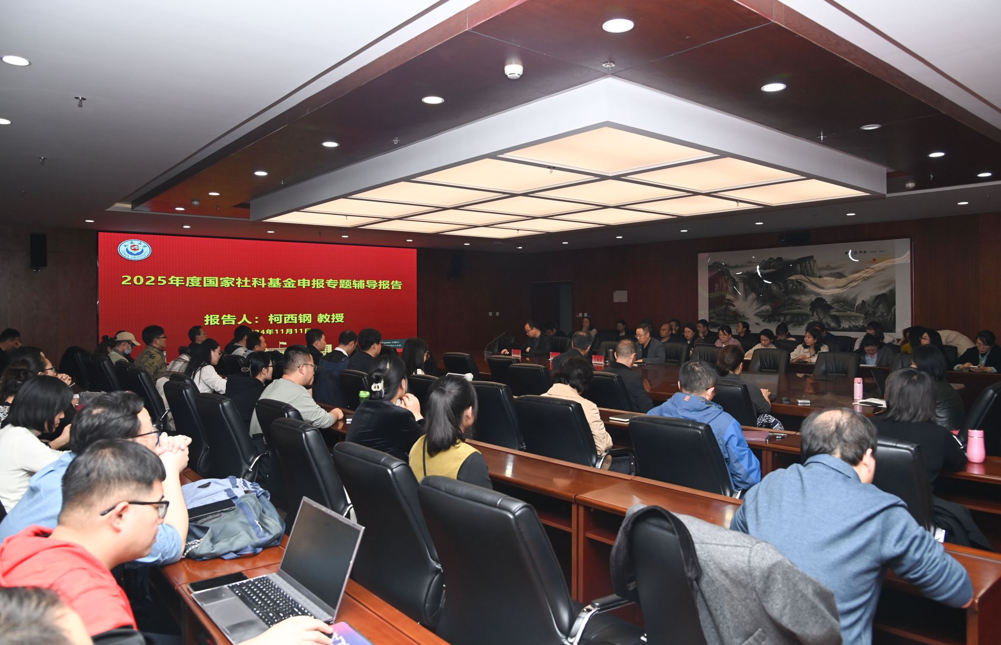 本网讯 为推进beat365有组织科研工作,提高国家社科基金申报质量,11月11日下午beat365在行政楼2楼会议室召开2025年度国家社会科学基金项目申报专题辅导报告会。学校邀请陕西师范大学柯西钢教授作了《国家社科基金申报经验分享》的报告会,各文科学院科研院长、科研秘书及申报2025年国家社会科学基金项目老师90余人听取了报告会,报告会由社会科学处处长王俊虎教授主持。