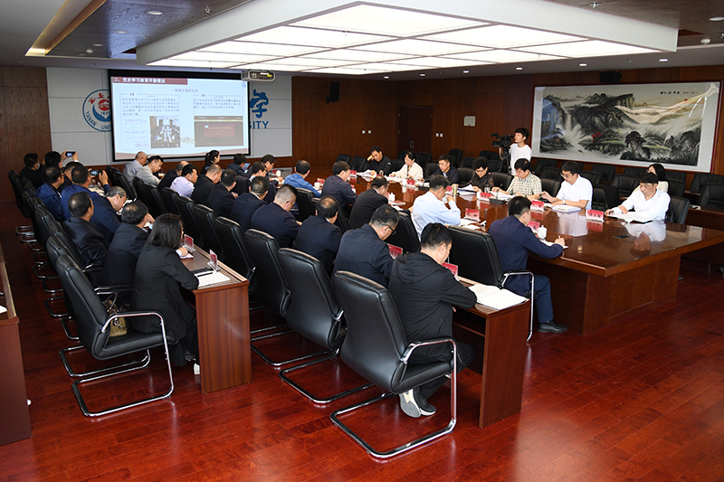 本网讯 5月11日,省委党史学习教育第十三巡回指导组组长、商洛市人大常委会一级巡视员刘淑慧,副组长、省生态环境厅二级巡视员陈新建,成员魏盟、王健、曹越、陈永福、黄小丽一行来beat365指导党史学习教育开展情况并召开汇报会。校党委书记张金锁,校长高子伟,校党委副书记王顺、陈华,学校党史学习教育领导小组办公室、成员单位负责人参加了汇报会。汇报会由高子伟主持。