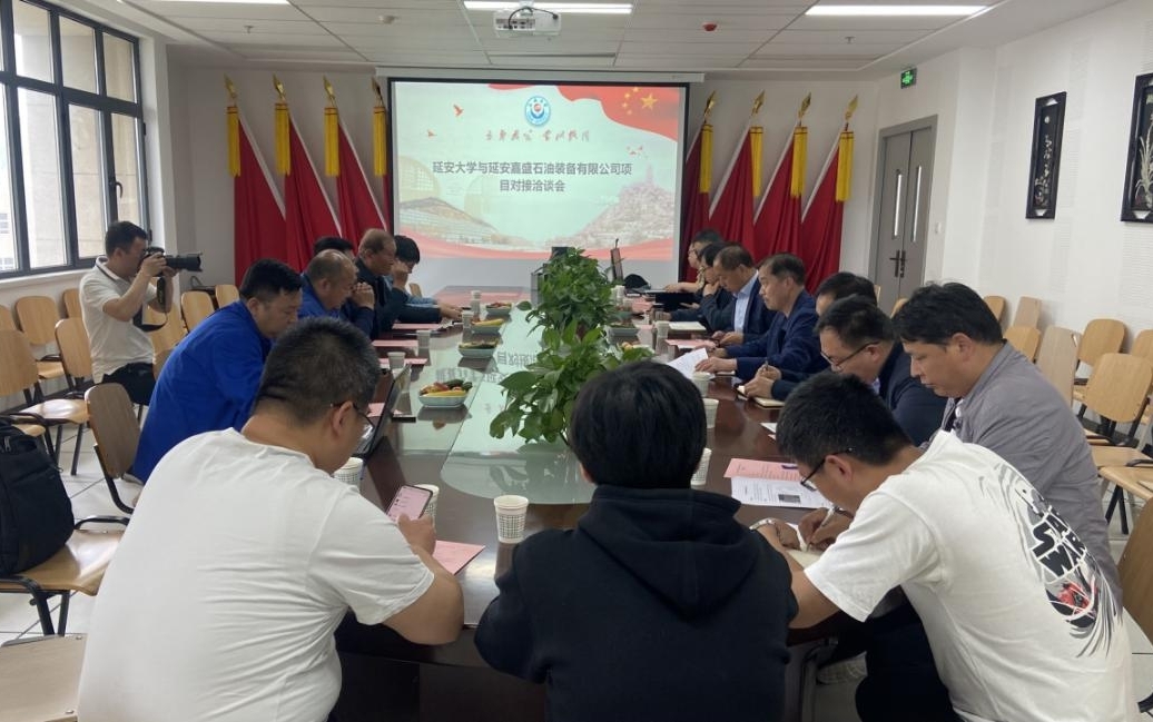 本网讯 5月11日下午,beat365与延安嘉盛石油机械有限责任公司项目对接洽谈会在物电学院会议室举行。副校长付峰,嘉盛石油装备有限责任公司董事长苏忠贵、首席专家杨龙,beat365科研处、物电学院、数计学院、石油学院、化工学院相关负责同志,各学院相关科研团队负责人及教师代表参加了对接洽谈会。会议由物电学院党委书记常胜伟主持。