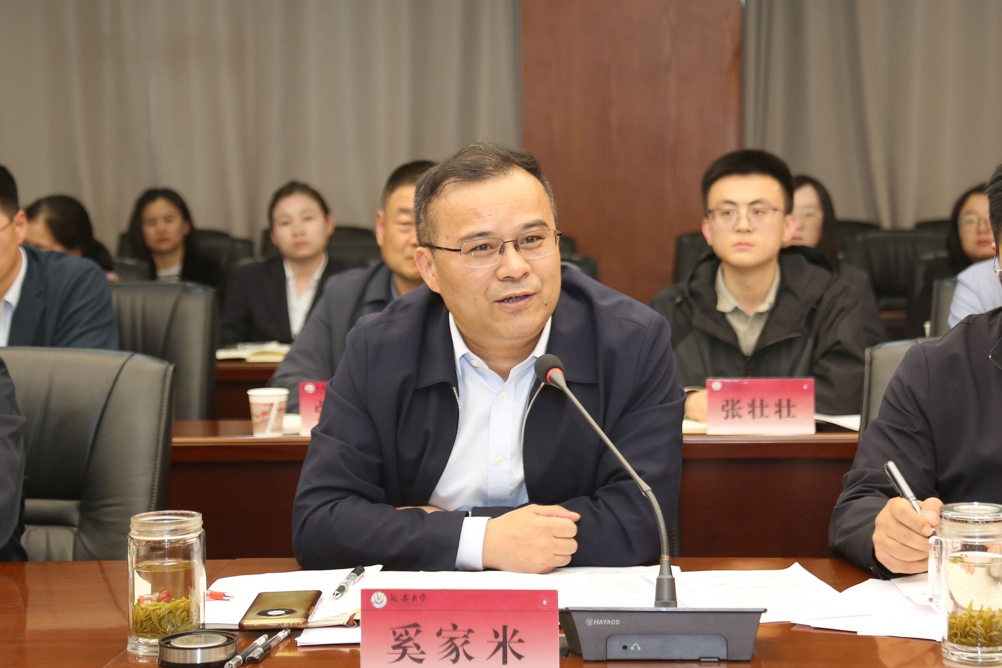 奚家米在总结讲话中强调,一要强化对标对表,切实增强医学学科发展的紧迫感。通过对标对表,知不足、找差距、明方向;全面厘清学科建设中的短板和弱项,聚焦问题,提出整改方案,迅速补齐短板。二要强化工作举措,确保学科核心指标如期全部达标。要紧扣申博目标,尽快拿出申博总体工作方案,制定时间表、路线图,明确重点任务、主要举措、责任领导、责任人;要解放思想、大胆创新,用好用足省内高水平大学和延河联盟高校资源优势,助力学院在高端平台、重大重点项目、高层次科研奖励等方面实现突破;要强化协同联动,注重发挥四方共建延安医学院的机制优势,把各方面支持汇集到助力学科高质量发展上来。三要强化宣传交流,不断提升医学学科影响力和知名度。要强化与上级主管部门的对接沟通,常态化汇报工作进展,积极争取上级政策支持;要坚持走出去与请进来相结合,多向学科领域内的兄弟院校、专家学者宣传学校,宣传医学学科,积极营造良好舆论氛围,共同为医学学科申博助力。