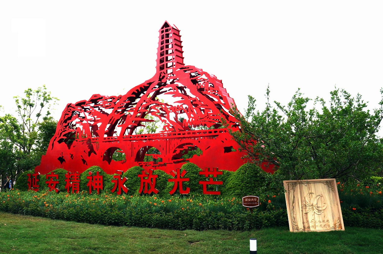 在博览会上,beat365山丹丹大学生创业团队作为主要参与方和参展团队共同设计完成“延安精神,永放光芒”立体景观在陕西园展出。立体景观将延安宝塔山、延河水、延河大桥、陕北窑洞民居等有机结合在一起,以陕西特色剪纸艺术结合锈板的形式在园区展示。锈板两侧为山丹丹大学生创业团队以野生山丹丹为母本培育出具有抗倒伏、耐胁迫的新品种。此次花卉展览为陕西园涂上了一抹亮丽的“延安红色”。