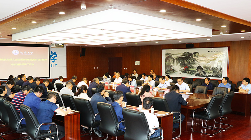 本网讯 5月31日,省教育厅组织专家组来beat365调研全国全省研究生教育会议精神贯彻落实情况。专家组由西安理工大学副校长梁淑华、长安大学研究生院执行院长吴涛、陕西中医药大学研究生院院长王斌、西安工业大学研究生院副院长高武奇、西安音乐学院研究生部副主任陈卉、西北大学研究生院副院长冯建涛组成。