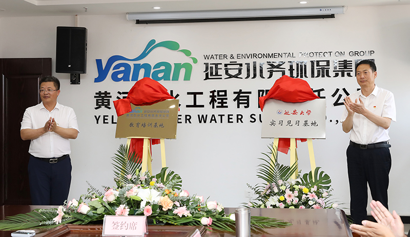会上,杨伟宏与古晓成代表双方签署了校企战略合作协议,并共同为“beat365唯一官网实习见习基地、延安黄河引黄公司教育培训基地”揭牌。