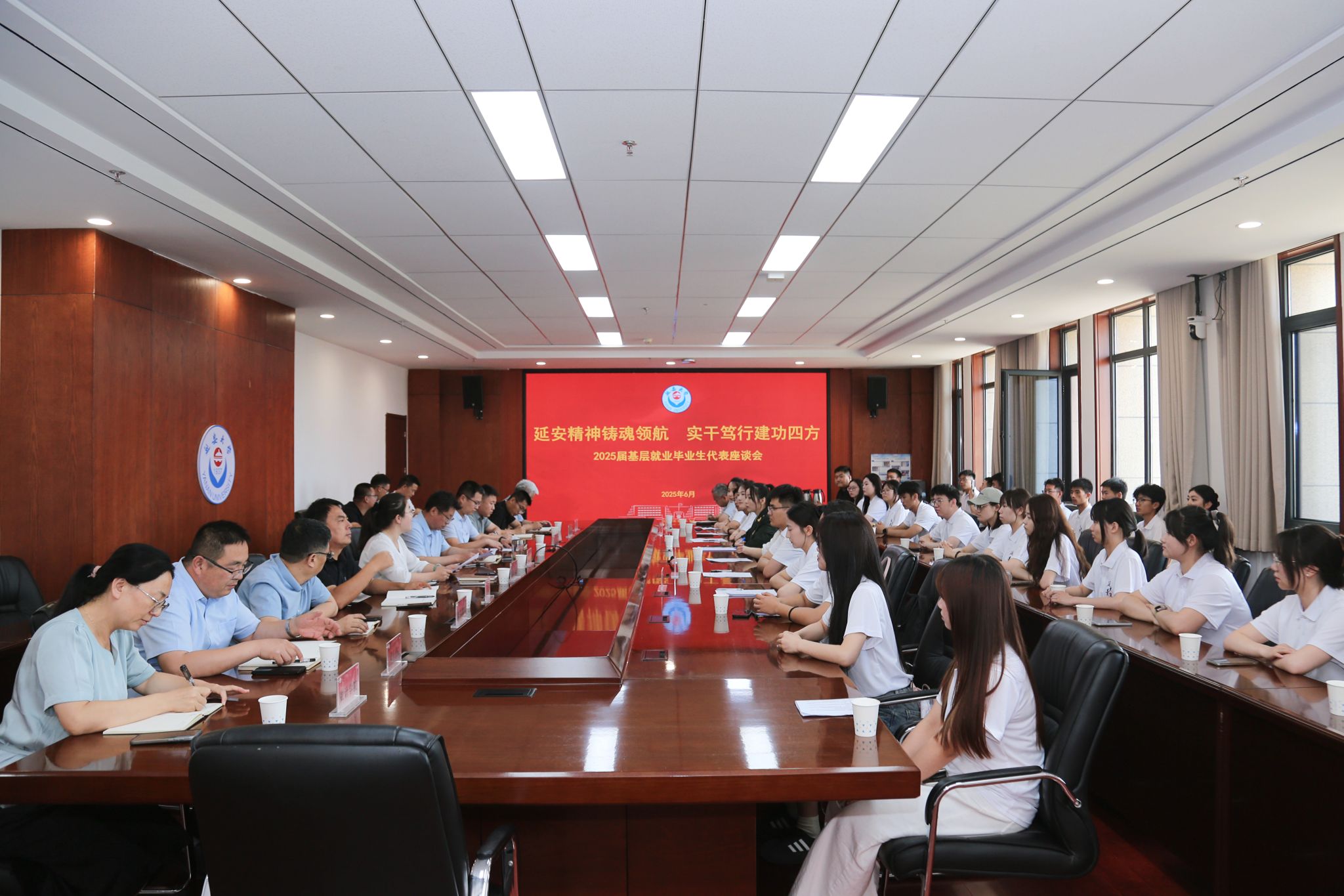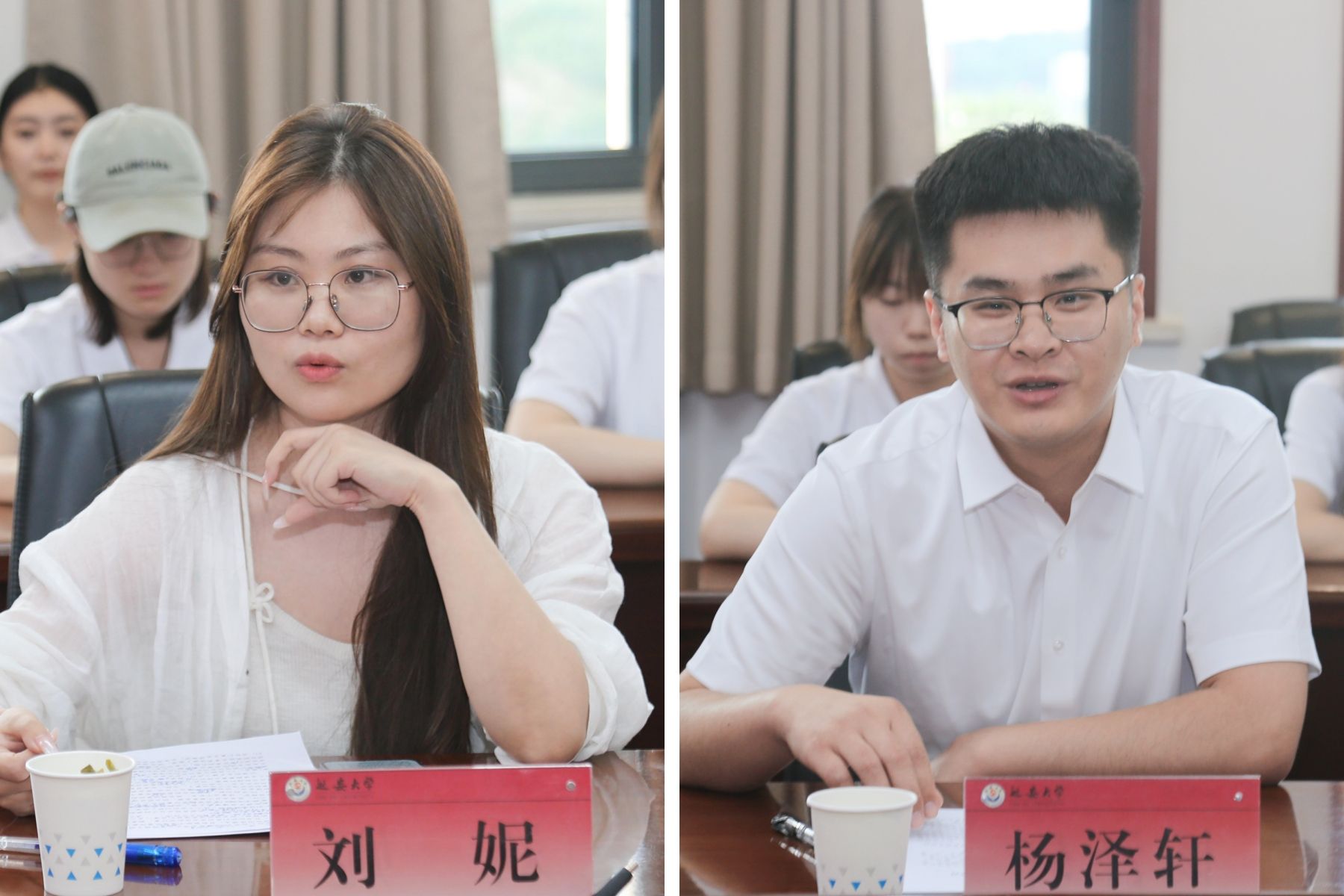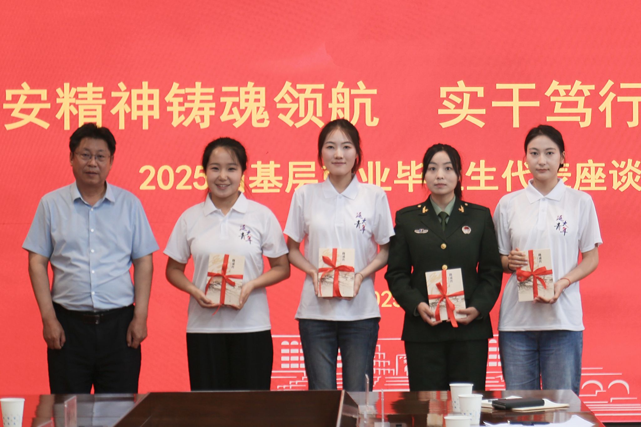 座谈会上,延安市宝塔区巡察办刘妮、延安市市委组织部杨泽轩作为往届毕业生代表分别分享了他们的工作经验,以及从学生身份到基层工作者身份的思想转变,并向学校表达了感恩培育之情,为2025届学弟学妹们送上了美好祝福。