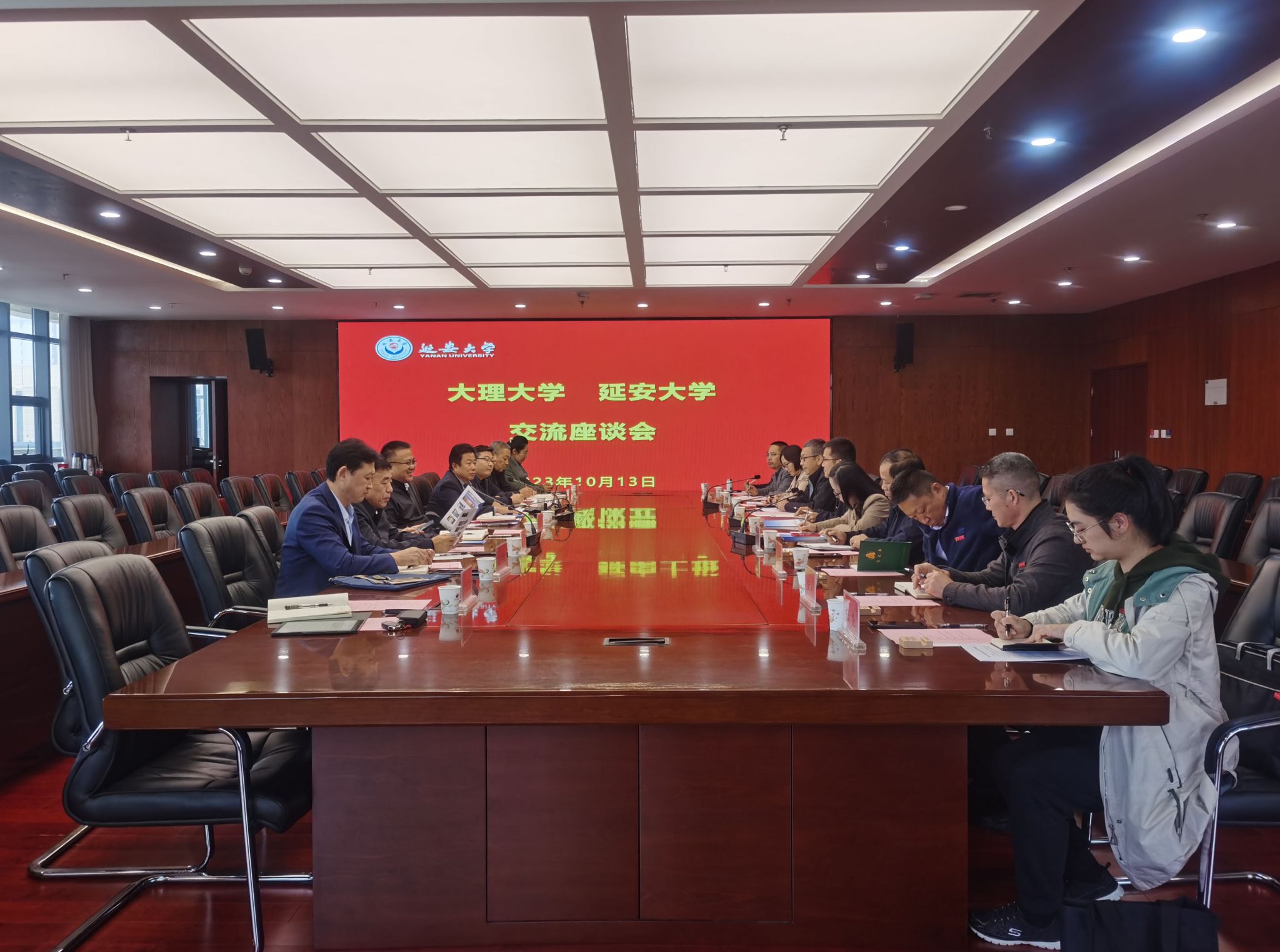 本网讯 10月13日上午,大理大学张海亮副校长一行10人来beat365调研本科教育教学审核评估工作,交流座谈会在新城校区行政楼二楼会议室召开。beat365副校长谭虎娃出席会议并致辞,人事处处长雷伟、教务处副处长董庆来、学生处副处长王红、马克思主义学院常务副院长高布权、体育学院院长宗有智、教务处副处长兼医学院教学办主任高枫和评估处有关人员参加座谈会。会议由评估处处长王文东主持。