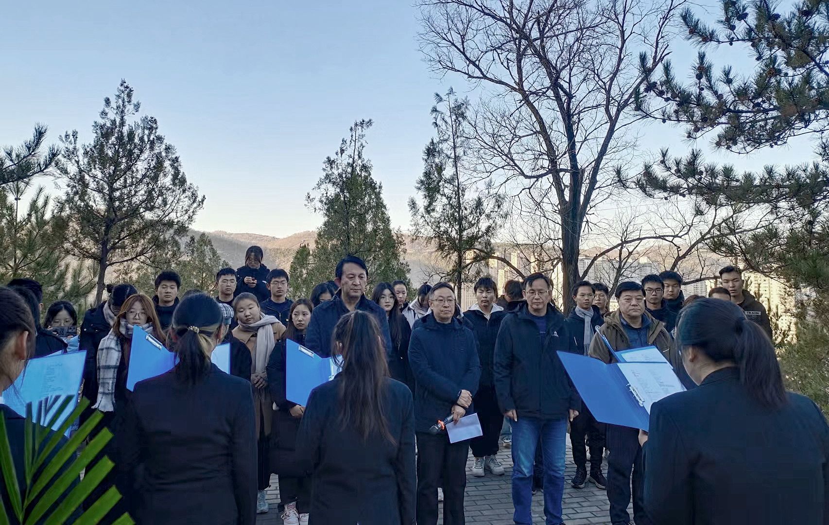 上午8时,文学与新闻传播学院100余名师生,冒着初冬的严寒,由院长王俊虎和党委书记党子奇带领,沿着蜿蜒的小路来到位于文汇山半山腰的路遥先生墓园,向路遥墓敬献花篮和散枝菊花、行鞠躬礼。王俊虎介绍了路遥生平事迹,文学院语言艺术团学生代表白瑶等,诵读了诗歌《怀念路遥》,表达了对路遥先生的无限怀念和崇高敬意。