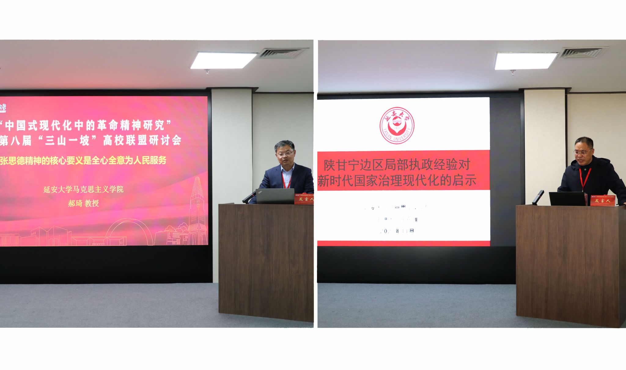 主旨报告阶段,郝琦、王东维分别以《张思德精神的核心要义是全心全意为人民服务》《陕甘宁边区局部执政经验对新时代国家治理现代化的启示》为题作了主旨发言。