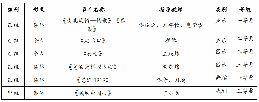 陕西省第七届大学生艺术展演活动表演类优秀创作奖获奖名单