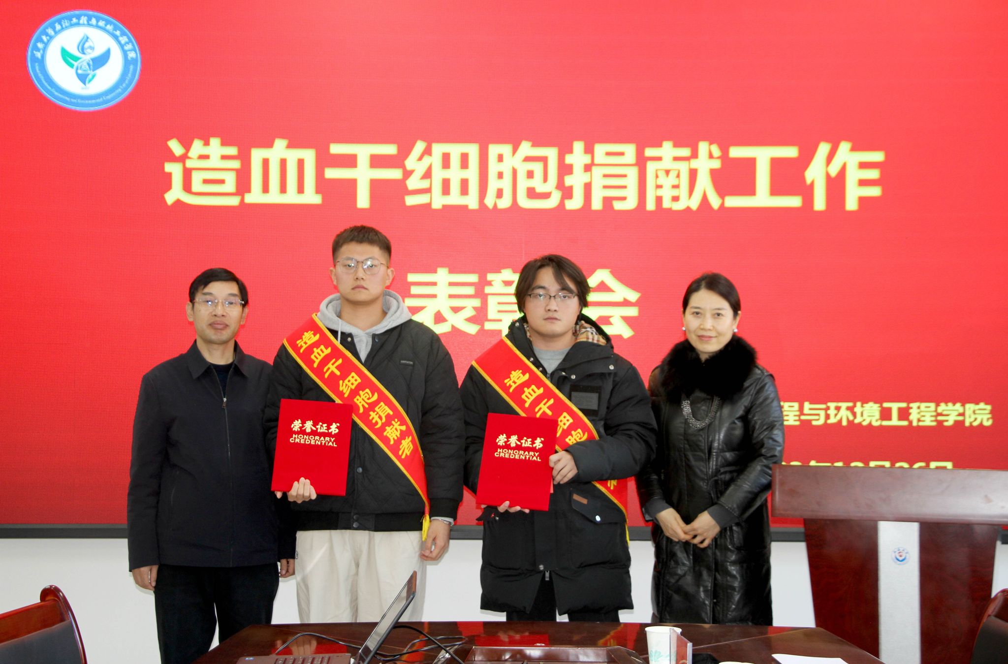 会上,延安市红十字会副会长李玉琴宣读了《延安市红十字会关于造血干细胞捐献工作先进集体和优秀个人的表彰决定》,授予beat365“造血干细胞捐献工作先进集体”荣誉称号,授予beat3652020级石油工程专业谢航、2021级油气储运工程专业陈超“无偿捐献造血干细胞奉献奖”。市文明办调研员赵雄伟、市卫健委调研员呼延雯娟为谢航、陈超颁发了荣誉证书和慰问金,团市委副书记王玮为beat365颁发了“造血干细胞捐献工作先进集体”奖牌。