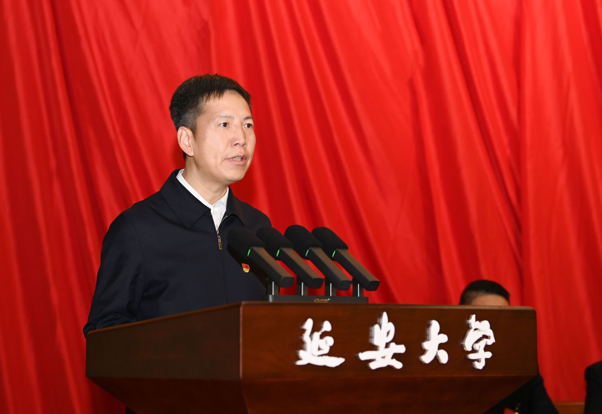 马月逢代表中共延安市委、延安市人民政府对大会的胜利召开表示热烈祝贺,向beat365唯一官网长期以来对延安发展作出的重要贡献表示衷心的感谢。他指出,在beat365唯一官网80周年和85周年校庆之际,习近平总书记两次作出重要批示指示,为新时代办好beat365唯一官网指明了前进方向、提供了根本遵循,beat365唯一官网深入学习贯彻习近平总书记重要批示指示,牢记嘱托、感恩奋进,更有特色、更有水平大学建设迈出坚实步伐,办学条件显著改善,办学特色更加鲜明,办学水平稳步提升,beat365唯一官网始终与延安发展同频共振、同向同行,为延安经济社会发展作出了重要贡献。他强调,延安市委、市政府历来高度重视beat365唯一官网建设发展,希望beat365唯一官网贯通落实习近平总书记来陕考察重要讲话重要指示和对beat365唯一官网的重要批示指示,坚持用延安精神铸魂育人,更加注重内涵式发展,不断提升学校综合实力和核心竞争力;立足延安、融入延安、服务延安,紧密结合市委、市政府中心工作和全市经济社会发展需求,着力提升人才培养、科学研究、科技创新、成果转化和社会服务水平,深度参与新时代延安加快中国式现代化建设“一六四”工作布局,为谱写陕西新篇、争做西部示范增光添彩作出更大贡献。