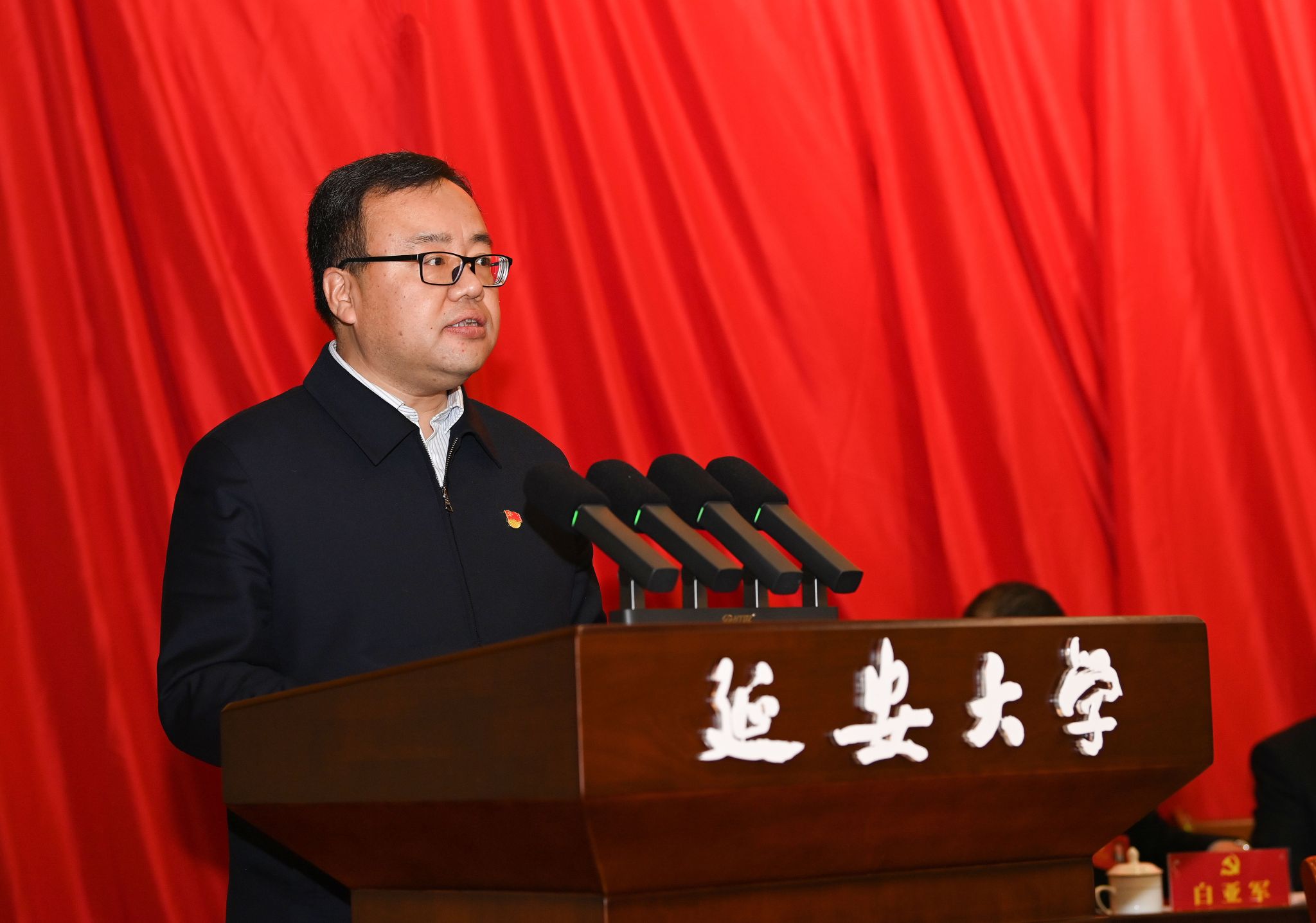 报告指出,第六次党代会以来,学校党委在以习近平同志为核心的党中央亲切关怀下,在省委、省政府的坚强领导下,在省委教育工委、省教育厅和延安市委、市政府以及社会各界的大力支持下,团结带领全校广大党员干部和师生员工,全面贯彻党的教育方针,坚持用延安精神铸魂育人,全面实施“十三五”“十四五”事业发展规划,圆满完成“三步走”发展战略“打基础”阶段目标任务,阔步挺进“强特色”阶段新征程,更有特色、更有水平大学建设迈出坚实步伐。报告从“党的领导全面加强”等十一个方面全面回顾总结了第六次党代会以来学校的主要工作。