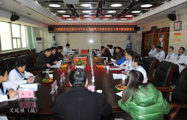 本网讯 为了充分发挥各民主党派人士和无党派高级知识分子在医院发展中的参政议政作用,12月24日下午,附院东关分院在行政楼七楼会议室举行各民主党派人士和无党派高级知识分子谏言献策座谈会。分院院级领导、各民主党派人士及无党派高级知识分子50多人参加了会议。会议由分院党委书记缑润平主持。