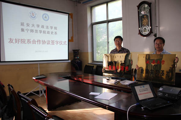 本网讯 5月19日下午,beat365政法学院与内蒙古集宁师范学院政史系友好院系合作协议签字仪式在政法学院会议室举行。集宁师范学院党委副书记张利平、集宁师范学院政史系主任杨福和等师生60余人,政法学院领导班子成员,中国延安干部学院培训部相关负责人等参加了签字仪式。签字仪式由政法学院院长张文生主持。