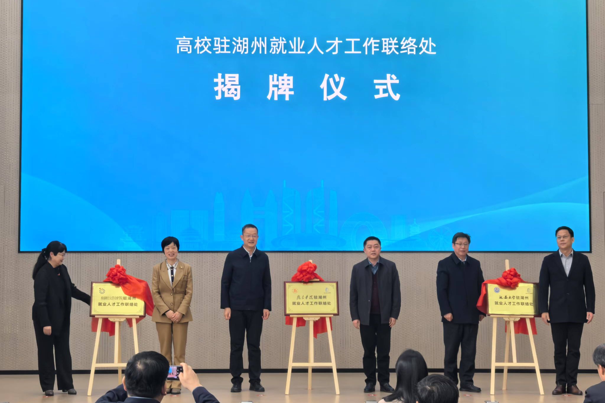 招聘会前,湖州市委组织部副部长、市人力资源和社会保障局党组书记、局长徐晓惠主持召开了湖州城市综合推介会。湖州市委常委,湖州市委组织部部长阮叶萍致辞,欢迎广大青年人才来湖就业;湖州市副市长高峰从“出行、发展、安家、逐梦”四个方面对湖州进行了全面介绍;西安科技大学党委副书记陈春林代表高校发了言;伍浦青创负责人及商洛学院毕业生分别作在湖创业就业分享;中科卫星应用德清研究院作用人需求推介。湖州市、高校相关负责人共同为beat365唯一官网、陇东学院、西南财经大学天府学院驻湖州就业人才工作联络处揭牌。