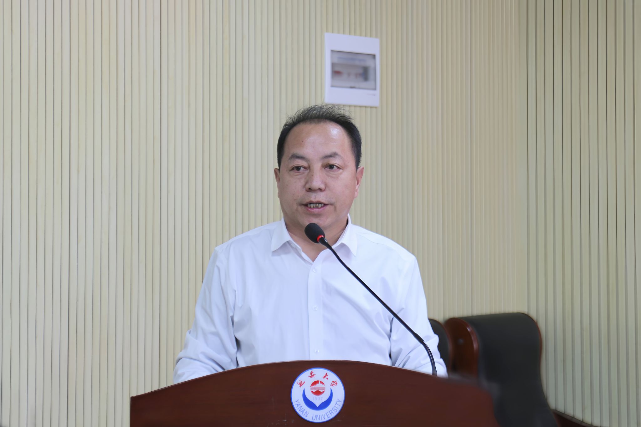 本网讯 为深入贯彻教育部“新时代立德树人工程”,提升学院人才培养质量,化学与化工学院于4月28日下午在杨家岭校区泽东干部青年学校第九会议室召开2025年化学师范生核心素养提升峰会暨教育实习动员大会。副校长付峰出席会议并讲话,会议邀请了延川中学校长王永江,延安市新区高级中学副校长贾重军,延安中学教师贾小维等基础教育一线专家作专题报告。教务处副处长王华,化学与化工学院全体领导班子成员、化学系主任、学院部分教师及2022、2023级化学专业130余同学参加会议。大会分为三个阶段,分别由学院党委书记赵芝瑞,副院长简选主持。