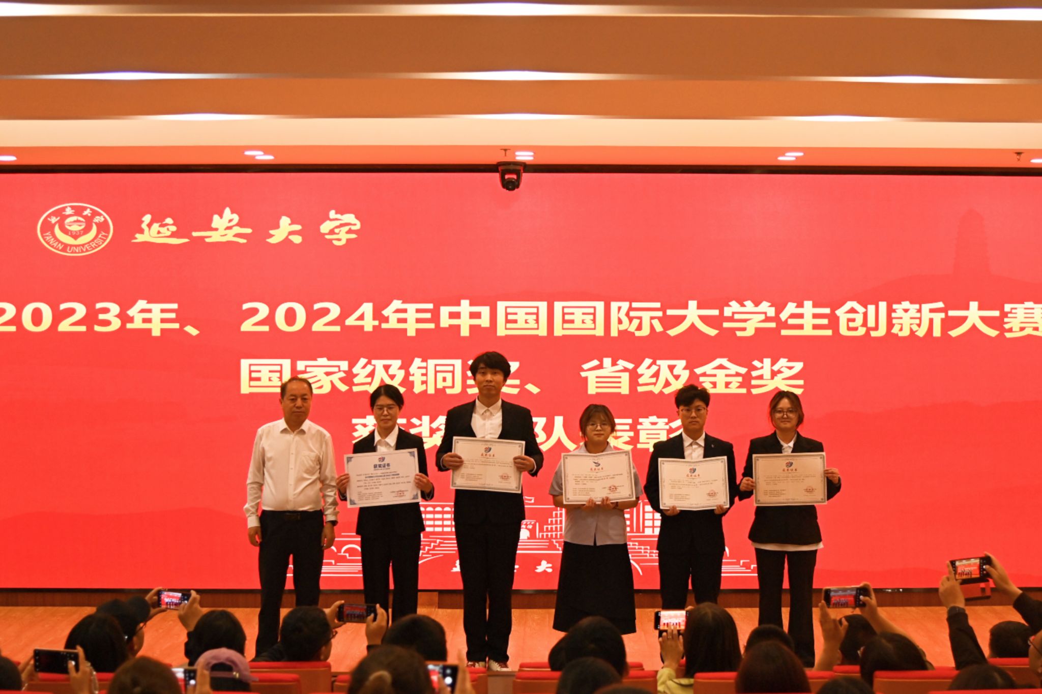 启动会上,教务处副处长高生军对2025年创新大赛工作作了安排部署。付峰为2023年和2024年获得大赛国家级铜奖和省级金奖的5个项目团队颁发获奖证书并在动员讲话中强调,大赛应重点围绕人工智能、新材料、生物医学等前沿领域,结合乡村振兴等国家战略需求,通过多学科交叉创新培育特色项目,传承延安精神,厚植家国情怀,深化“专创融合”实践,为建设创新型国家贡献延大智慧。随后,2023年和2024年大赛获得国家级铜奖和省级金奖项目团队进行了现场路演,为参会师生提供示范。王进在主持会议时,结合延安地域经济发展对项目进一步优化提出了指导意见。