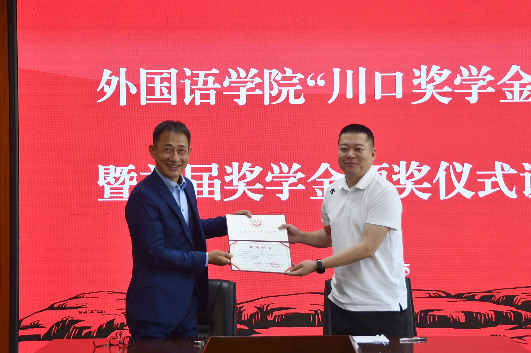 梁艳介绍了“川口奖学金”设立情况,并宣布了获奖决定。川口兴有先生在致辞中深情表达了对学院及学生的关怀与美好祝愿,强调了教育的重要性以及对青年学子的殷切期望。
