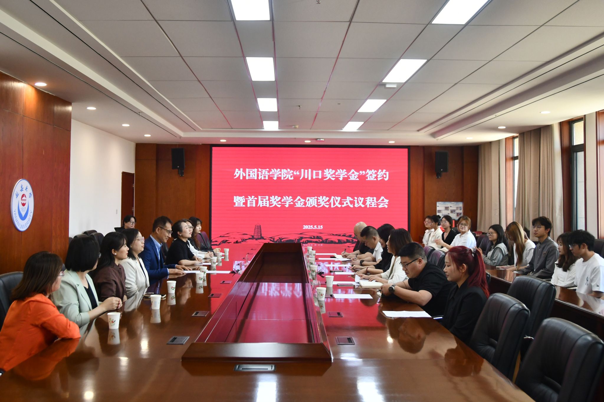 本网讯 5月15日,我院“川口奖学金”签约暨首届奖学金颁奖仪式在行政楼七楼会议举行。奖学金捐赠人川口兴有先生,校党委宣传部、对外交流与合作处、外国语学院等相关单位负责人,日语系全体教师和学生代表出席仪式。仪式由外国语学院党委书记梁艳主持。