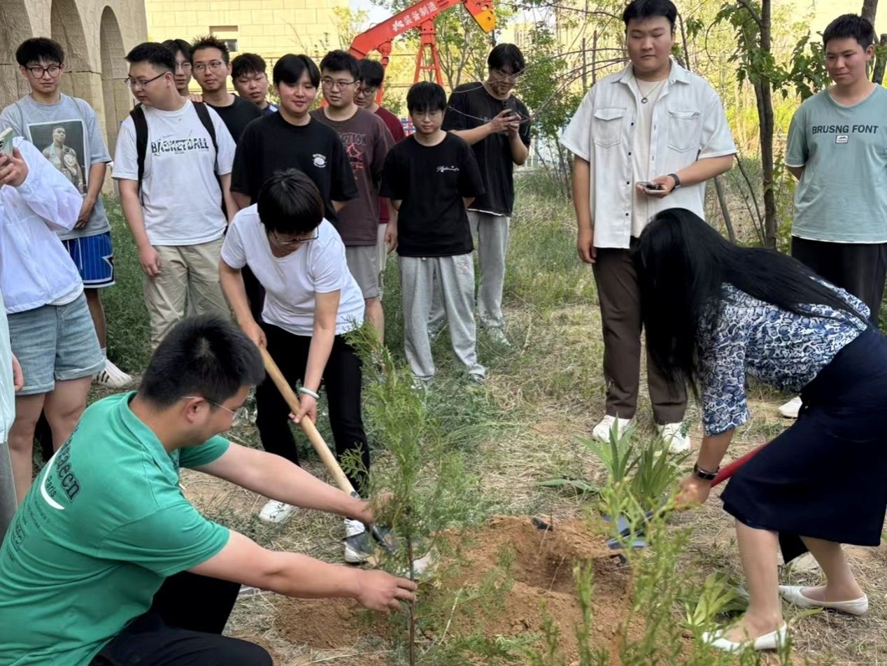 本网讯 5月20日下午,一场意义非凡的劳动教育实践活动在石油学院后花园温情启幕。学院党委书记常佩艳、院长张玉琦、副书记牛保明、部分教师以及全体2025届毕业生齐聚于此,共同参与“绿荫寄情·共植未来”毕业生纪念树种植活动,携手种下4棵侧柏树,以劳动为笔,以树木为墨,书写下毕业生与母校的深厚情谊。