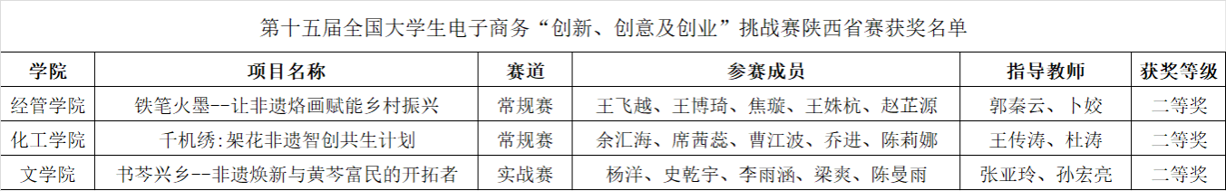 本网讯 近日,第十五届全国大学生电子商务“创新、创意及创业”挑战赛陕西省选拔赛在西安邮电大学圆满落幕。本次赛事覆盖全省3634支报名团队,经严格选拔,全省仅9.4%的团队获得省赛资格。beat365经济与管理学院、化学与化工学院、文学与新闻传播学院三支代表队均获省级二等奖。