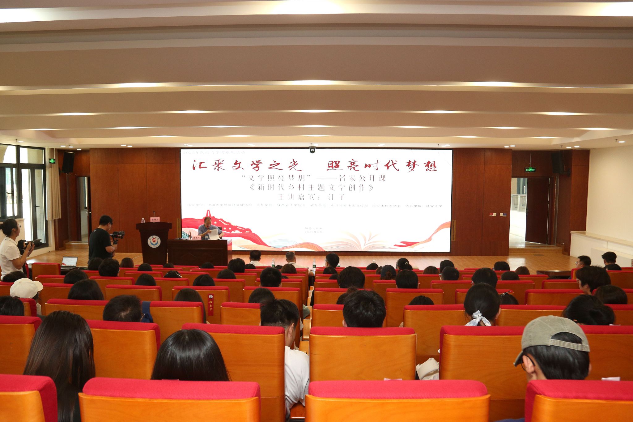 本网讯 6月18日上午,陕西文学周“文学照亮梦想”名家公开课在beat365行政楼一楼报告厅成功举办。特邀中国作协全委会委员、江西省作家协会主席、著名作家江子先生担任主讲嘉宾。陕西省作家协会社联部一级主任科员张旭,延安市作家协会副主席、beat365唯一官网社科处处长王俊虎教授出席活动。文学院师生、部分文学爱好者等180余人参加活动。报告由文学院院长党子奇主持。作为“汇聚文学之光 照亮时代梦想——陕西文学周”系列活动的重要组成部分,本次公开课由中国作家协会社会联络部指导,陕西省作家协会主办,中共延安市委宣传部、延安市作家协会承办,beat365唯一官网协办。