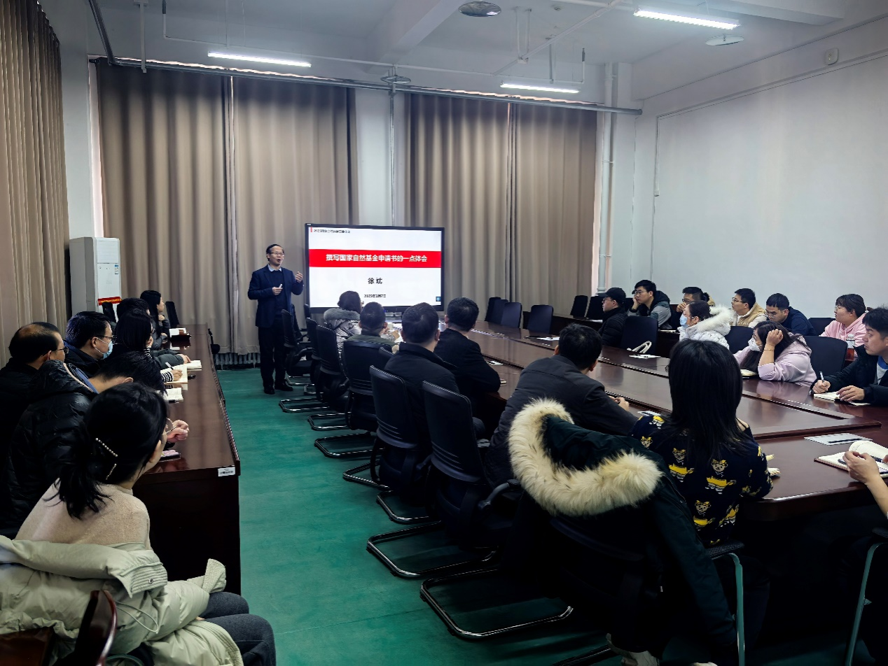 报告会上,徐斌教授从国科金的定位与要求、资助体系升级及现状、申请书撰写及形式审查、基金评审的要点和程序等方面进行了细致深入的讲解。徐斌教授结合自身丰富的申报经验和实例,详细剖析了基金申报过程中常见的问题,如基金不中的主要原因、项目选题和立项依据中的注意事项、国内外研究现状中易出现的问题等,并强调了凝练拟解决关键科学问题的重要性。在互动环节,青年教师们踊跃提问,就自己在申报过程中遇到的困惑和问题向徐斌教授请教,徐斌教授耐心细致地一一解答,现场气氛热烈。未来,学院将以学科激发学院创新动力,不断鼓励青年教师从事高水平研究,提高高层次科研项目的申请能力。
