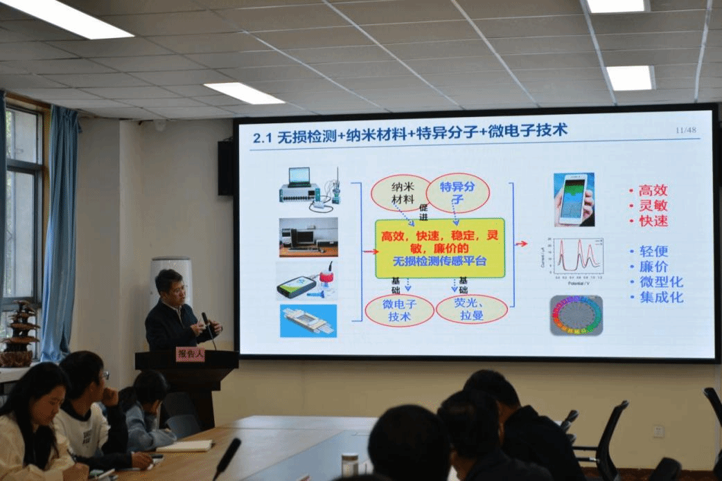 邹小波教授以自己研究团队多年来在研究领域所做的工作以及取得的成果及经验为例,详细阐述了做好科研的基本要求,研究生阶段科研学习中要注意的问题,在科研过程中如何面对困难和挑战直至获得成功的持之以恒的科研精神以及如何在学习、工作中与导师相处,如何与同学相处等。