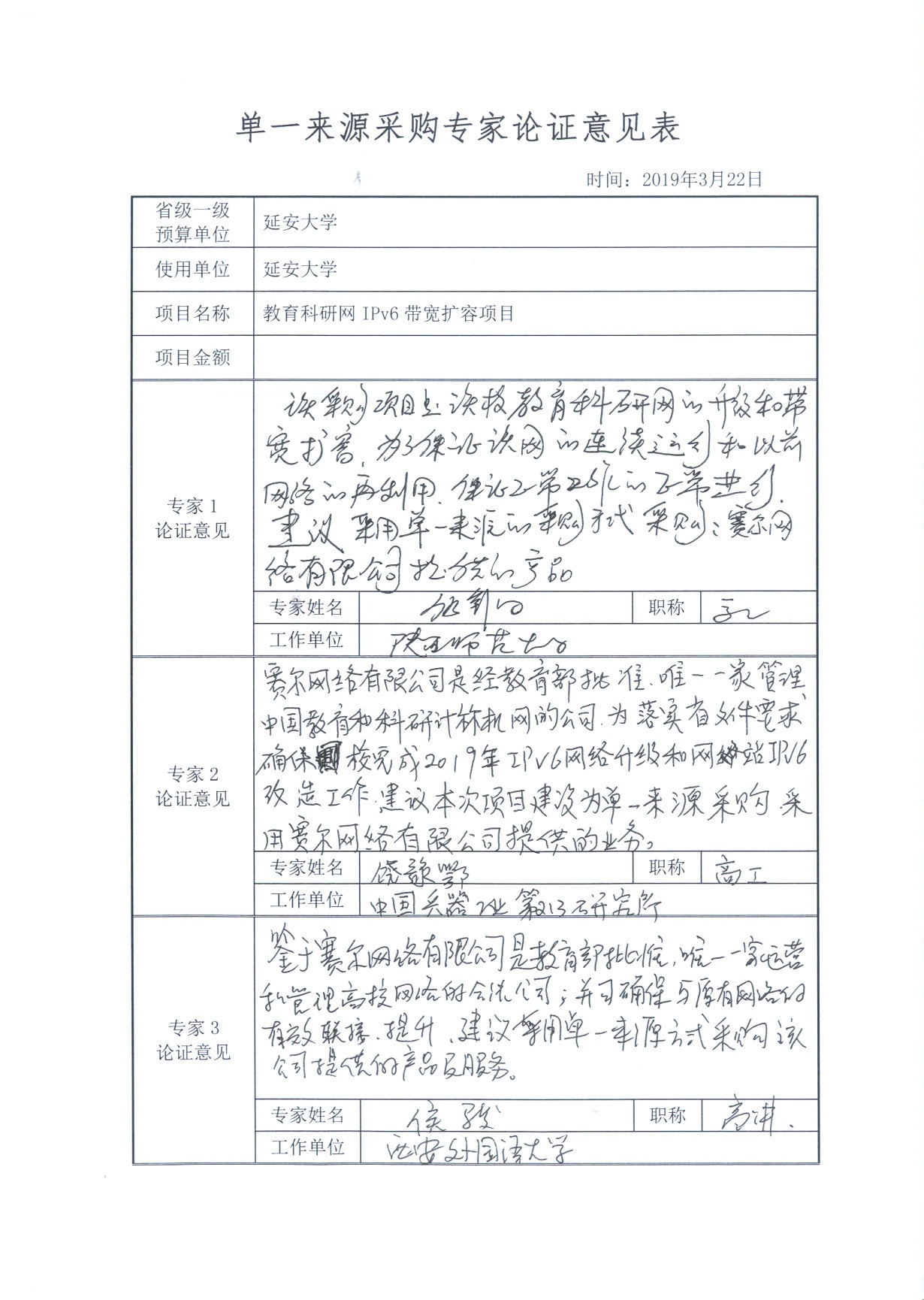 中共中央办公厅、国务院办公厅于2017年11月26日印发《推进互联网协议第六版(IPv6)规模部署行动计划》,陕西省教育厅办公室于2018年10月30日印发《关于贯彻落实推进互联网协议第六版(IPv6)规模部署行动计划》的通知,要求2019年底各高等学校全面接入IPv6网络,并完成门户网站的IPv6改造。 由于赛尔网络有限公司经教育部批准,是唯一一家运营和管理中国教育和科研计算机网的公司,负责高等院校的网站域名注册、IPv4/IPv6地址的管理与分配、中国教育和科研计算机网网络带宽的管理与维护等业务。因此,为了贯彻落实中、省文件要求,确保beat3652019年完成IPv6网络升级和门户网站的IPv6改造工作,同时考虑到带宽升级后线路传输的可靠性和稳定性等,特申请本次项目建设为单一来源采购,采用赛尔网络有限公司提供的业务。