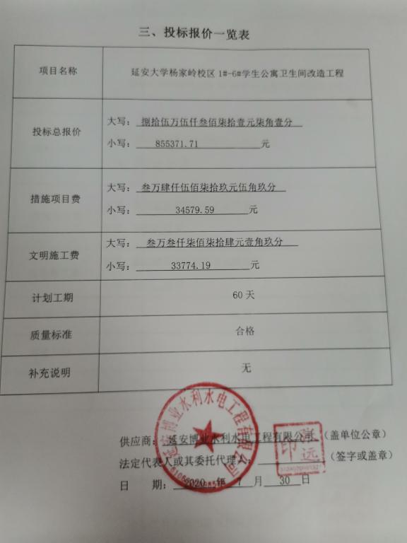 二、项目名称:beat365唯一官网杨家岭校区1#-6#学生公寓卫生间改造工程