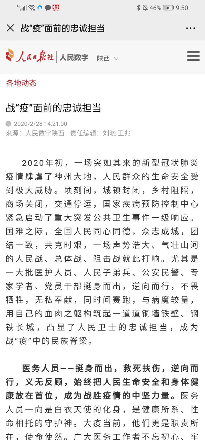 文章致敬时代英雄,崇仰忠诚担当,讴歌人间大爱,为抗击疫情加油,同时也体现了党的新闻工作者的忠诚与担当。