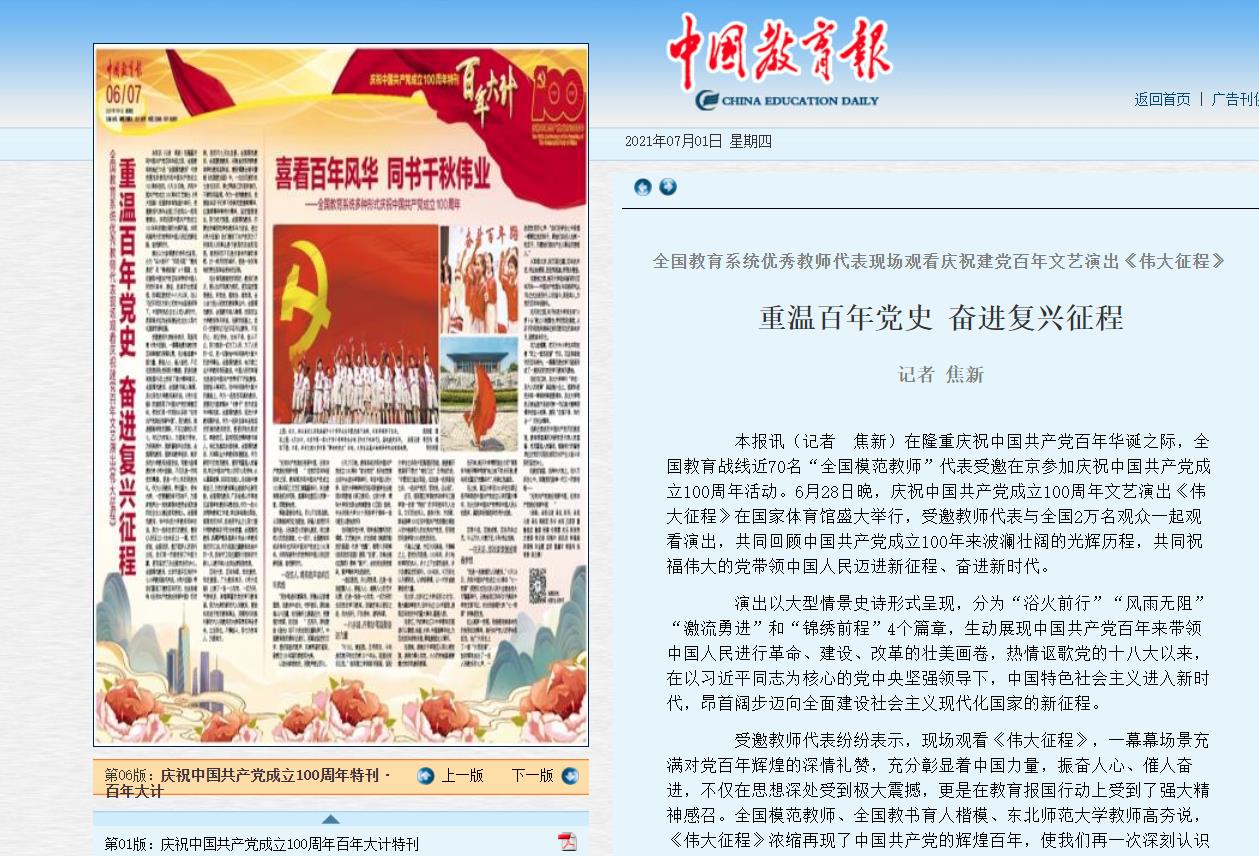 来源:中国教育报 记者:焦 新 发布日期:2021年7月1日 编发:党委宣传部
