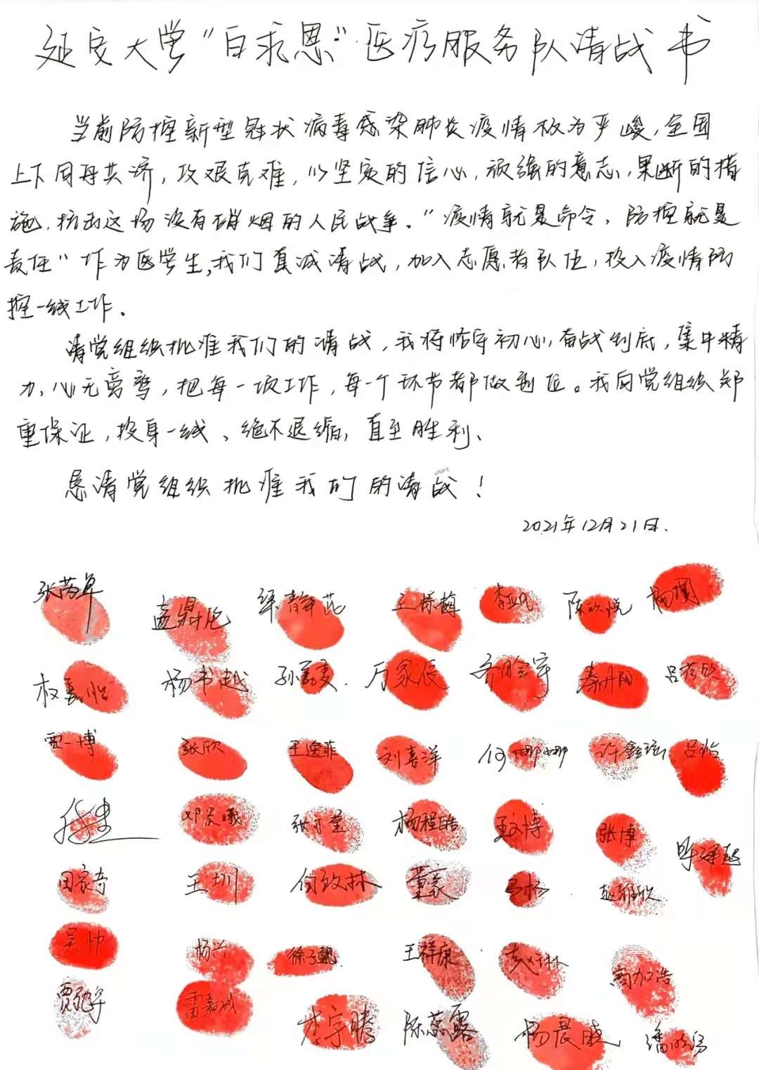 beat365唯一官网白求恩医疗服务队请战书