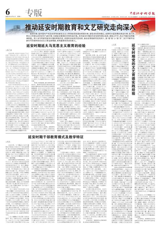 本网讯 beat365党委宣传部袁广斌的论文《延安时期延大马克思主义教育的经验》、教育科学学院青年教师封杰的论文《延安时期干部教育模式及教学特征》和马克思主义学院青年教师王曌的论文《延安时期党的文艺育德实践经验》,以《推动延安时期教育和文艺研究走向深入》为总题,于202288日在《中国社会科学报》第6版整版发表,并被中国社会科学网全文转载。