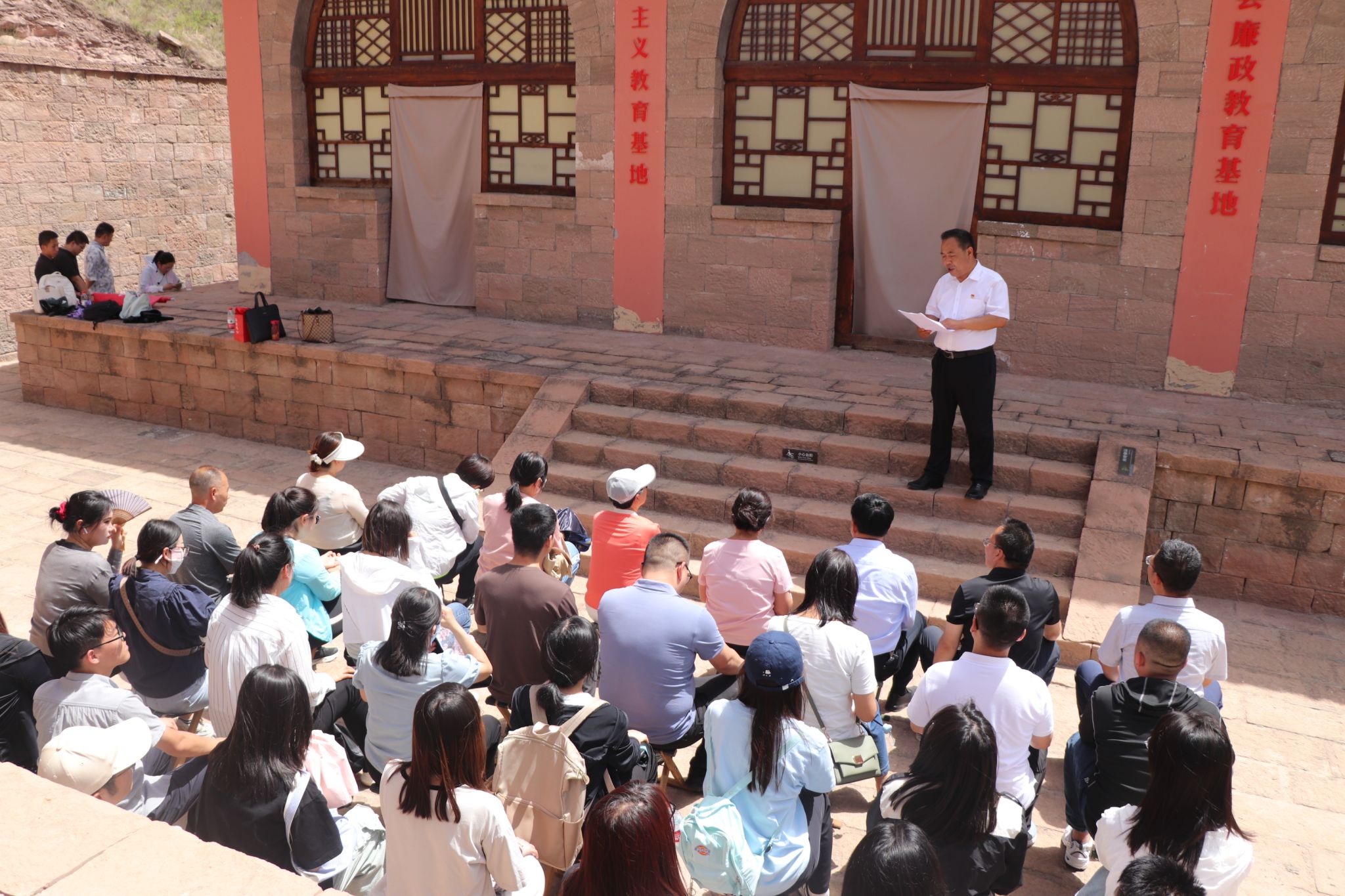 本网讯 为深入学习贯彻习近平总书记关于党纪学习教育的重要讲话和重要指示精神,进一步增强师生党员的纪律意识和拒腐防变能力,6月14日,马克思主义学院赴延川县红军东征革命纪念馆开展“践行延安精神 助力乡村振兴 做清正廉洁好干部”主题党日活动。延川县乾坤湾镇镇长郭小仪、人大主席高乙博,碾畔村党支部书记郭志明及部分老党员和我院50余名师生党员代表共同参加了活动,活动由教工党支部书记刘飞轮主持。