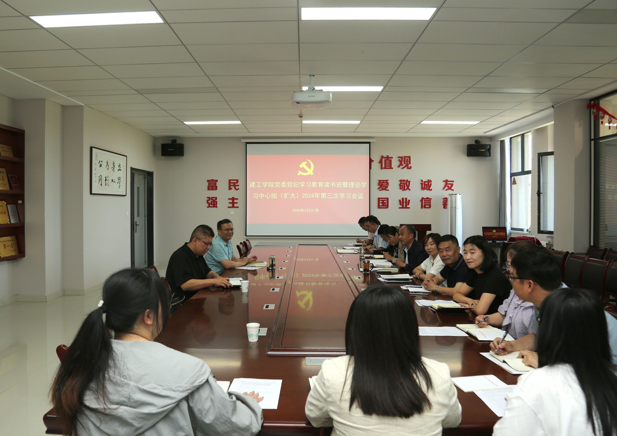 本网讯 为进一步推动党纪学习教育走深走实,5月31日,建工学院党委召开党纪学习教育读书班暨理论学习中心组(扩大)2024年第三次学习会议。校长奚家米到会指导,学院领导班子成员、党委委员、科级干部参加了会议。会议由建工学院党委书记赵耀锋主持。