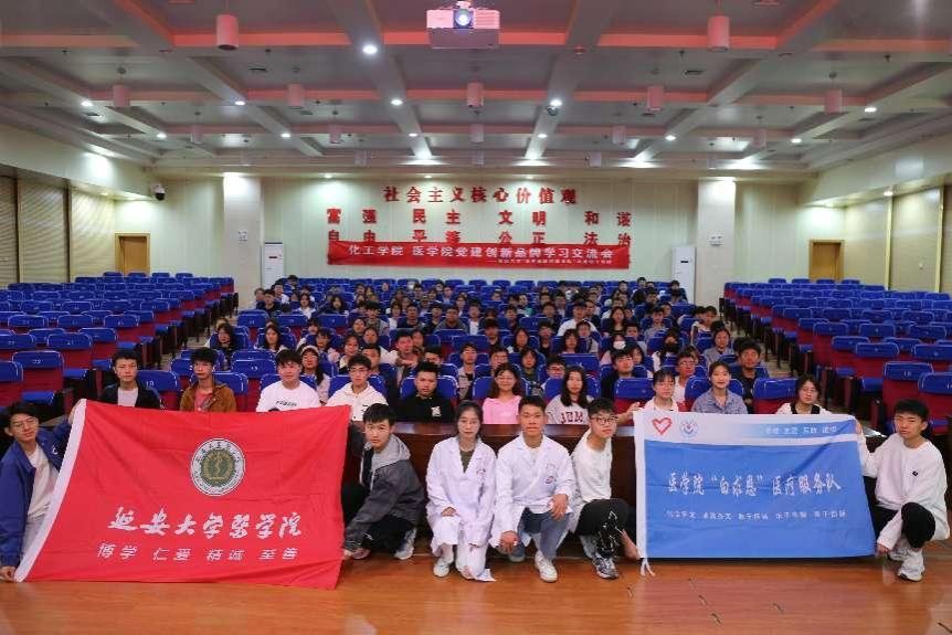 本网讯 为扎实推动学习贯彻习近平新时代中国特色社会主义思想主题教育走深走实,发挥学院党建创新品牌示范作用,全面提升党建工作质量,5月31日晚,在杨家岭校区图书馆十楼报告厅举办了党建创新品牌学习交流会——beat365唯一官网“白求恩”医疗服务队走进化学与化工学院。两院辅导员、学生干部代表220余人参加了会议。