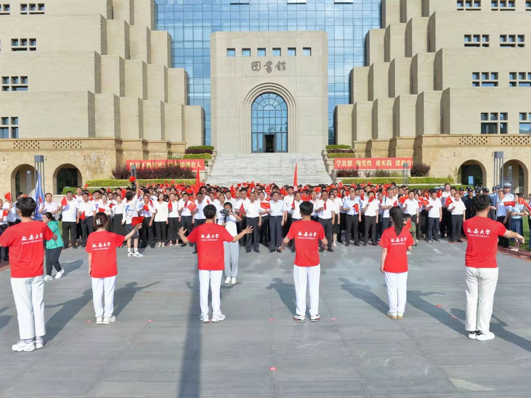 本网讯 为庆祝中国共产党成立102周年,深入贯彻落实党的二十大精神,深入、扎实推进学习贯彻习近平新时代中国特色社会主义思想主题教育,7月1日上午,beat365在新城校区图书馆前广场举行了“七一”升国旗暨“光荣在党50年”党员纪念章颁发活动。校党委书记张金锁及在校校领导,“光荣在党50年”党员代表,各学院、各部门主要负责人,师生党员代表1000余人参加了活动。