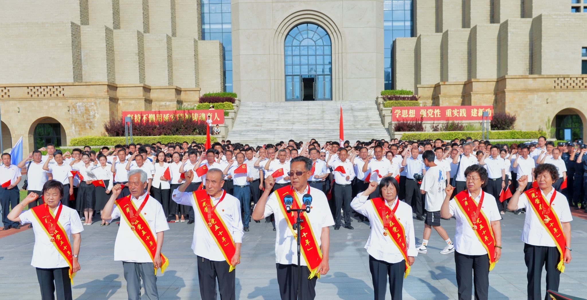 随后,国旗护卫队迎出中国共产党党旗,在“光荣在党50年”党员代表任学岭的带领下,参加活动的党员重温了入党誓词。活动在大家齐唱《没有共产党就没有新中国》中结束。