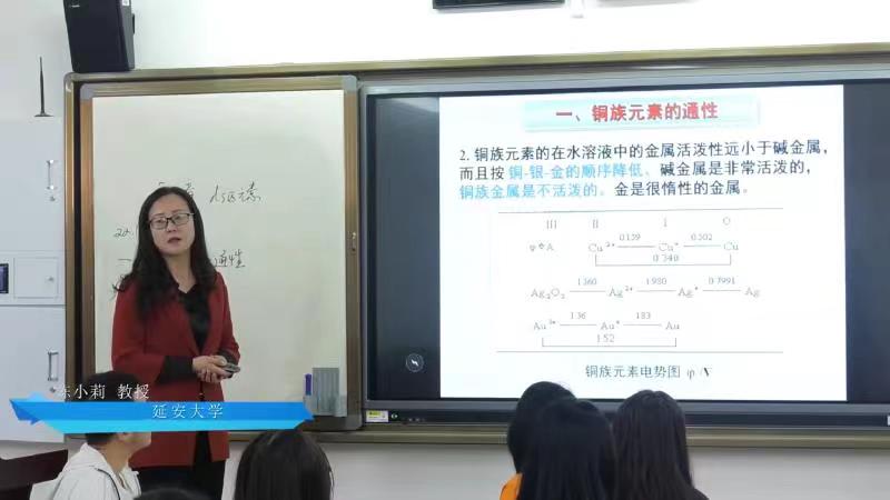 多年来,她主讲《无机化学》课程。在教学中,她根据专业培养目标和学生特点,引入OBE 教育理念,通过“问题导向(PBL)教学策略以启发,讨论,探究等多种教学方式将学生从被动学习变为主动学习的主体,重实践、全方位考核学生,通过引领和指导性的教授方法,激发学生明辨性思维、探索问题、解决问题能力和创新能力,实现无机化学基本知识和基本技术的传授、师范生教学技能的培养、富有延安精神特质的思政教育这三个核心目标。学生对枯燥的无机化学产生浓厚的兴趣,课前主动预习,课堂积极参与,课后及时完成自主学习任务,并能将无机化学知识运用到日常生活中。尤其是学生自主课的引入,极大激发了学生们学习的积极性和主动性,取得了良好的教学效果,课改成效显著,在全校进行推广交流,并在2019年1月13日中国教育一台《全国教育新闻联播》的《beat365唯一官网:找准突破口 推动课堂改革创新》中有报道。多年的不懈努力下她主讲的《无机化学》课程2021年获批陕西省一流课程。