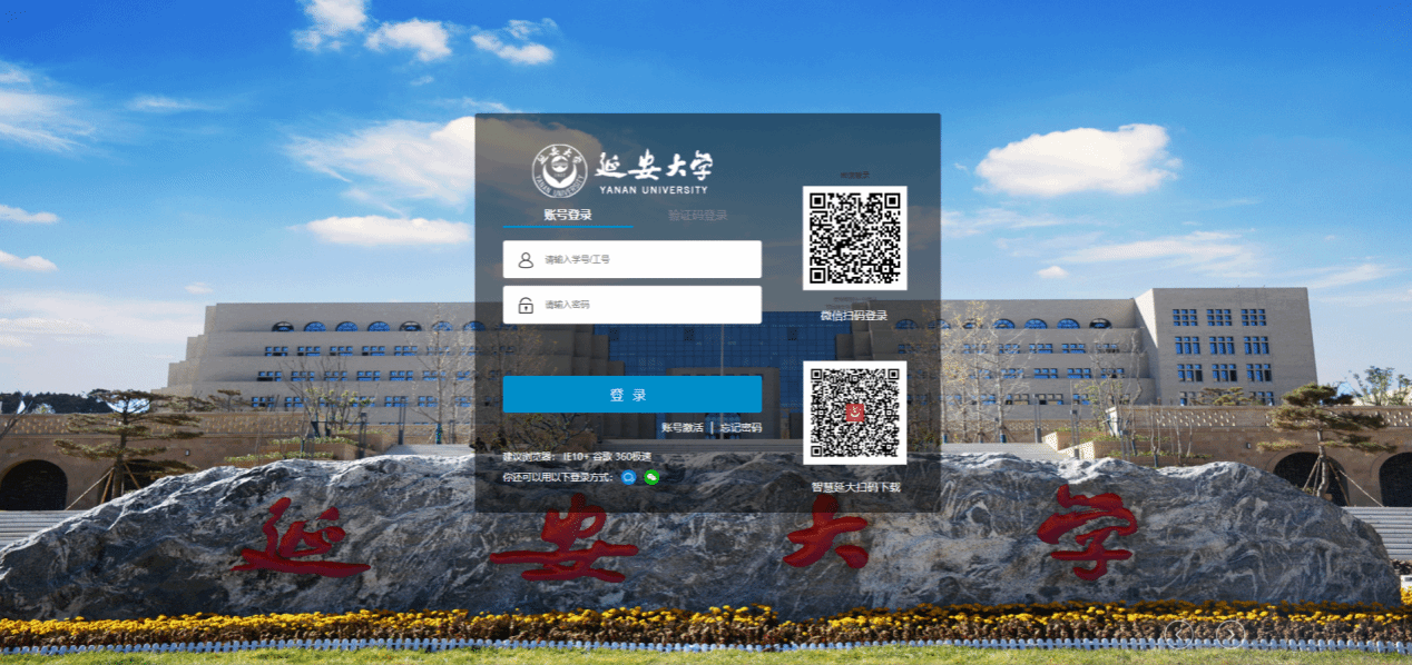2.点击右上角登录,进入延安大学统一身份认证界面,电子资源校外访问平台已和学校统一身份认证平台对接,广大师生通过统一身份认证平台进行登录即可,登录界面如下图所示: