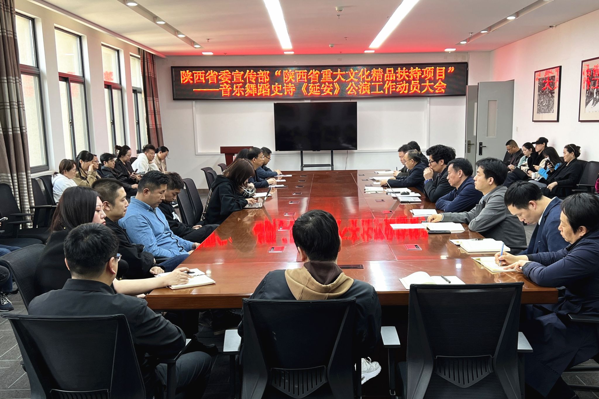 本网讯 4月10日下午,鲁迅艺术学院在beat365音乐楼3楼会议室举行由陕西省委宣传部扶持的“陕西省重大文化精品项目”音乐舞蹈史诗《延安》公演工作动员大会,副校长吕达、学院领导班子成员及全体教职工参加会议。会议由鲁迅艺术学院党委书记董振文主持。