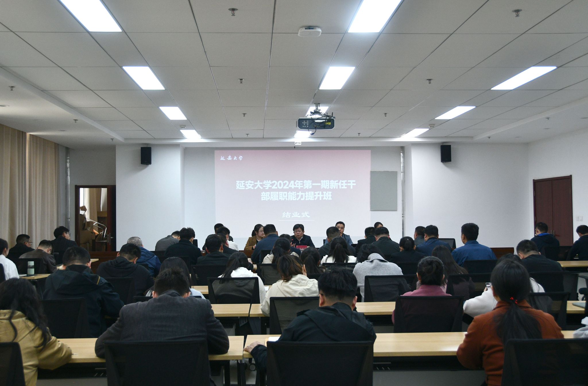 培训班于4月7日上午和10日下午,分别举行了开班仪式和结业仪式。在结业仪式上,为全体培训学员颁发了结业证书。校党委委员、组织部部长解文元作了总结讲话,要求新任干部要深入学习贯彻习近平总书记关于青年干部的重要论述,自觉做党的创新理论的笃信笃行者,对党忠诚老实的模范践行者,矢志为师生服务的无私奉献者,勇于担当作为的不懈奋斗者,希望学员们弘扬延安精神,厚植爱校情怀,立身为公、学以致用,胸怀大局、履职尽责,建功立业更有特色、更有水平大学建设。