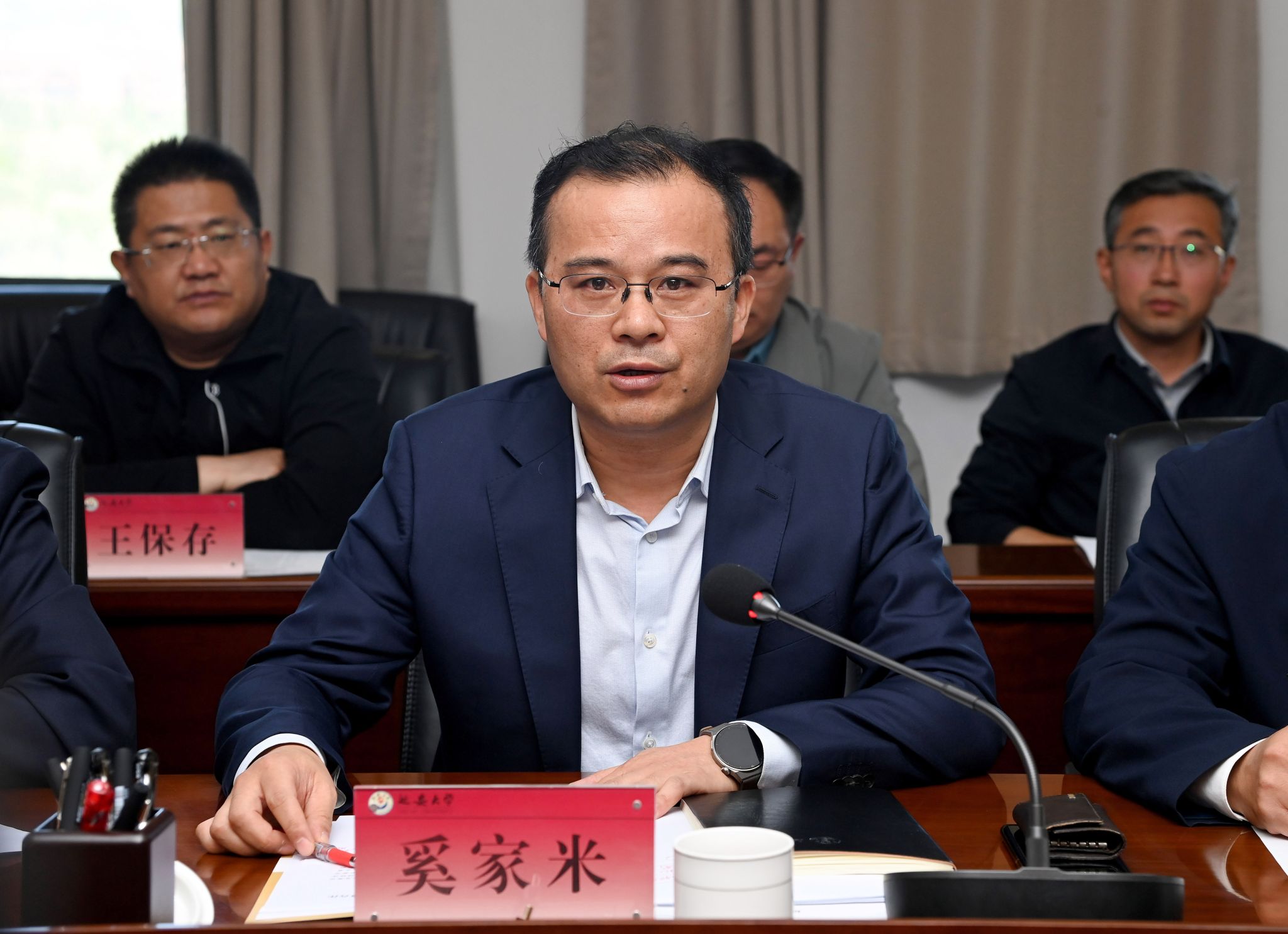 奚家米代表学校向延安市税务局一行的到来表示热烈的欢迎。他从学校历史沿革、办学方向、办学特色、服务地方经济建设等方面简要介绍了学校发展情况。他表示,延安市税务局自成立以来,始终秉持服务经济发展,保障国家税收,维护社会的公平正义等重要使命和责任,以优质高效便利的服务优化营商环境,加快转型发展,追赶超越,作出了积极的贡献。他希望,双方以此次签约仪式为新起点,充分发挥各自的优势,在党建联学联建合作、实训基地建设、校地引领乡村振兴等6个方面加强务实合作;并在实际实践中进一步扩大合作方向和领域,深化合作层次,共同推动各项合作落地见效,树立校地合作的新标杆,共同为服务陕北老区经济社会高质量发展作出新的更大贡献。