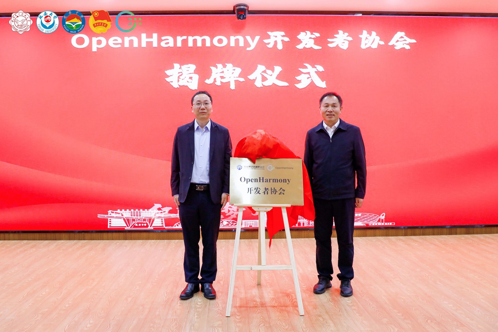 开幕式最后,任小龙、付峰、郭博共同为“科技创新人才贯通式共育基地”和“红色文化传承一体化育人基地”揭牌。陈海波为beat365唯一官网“OpenHarmony开发者协会授牌。