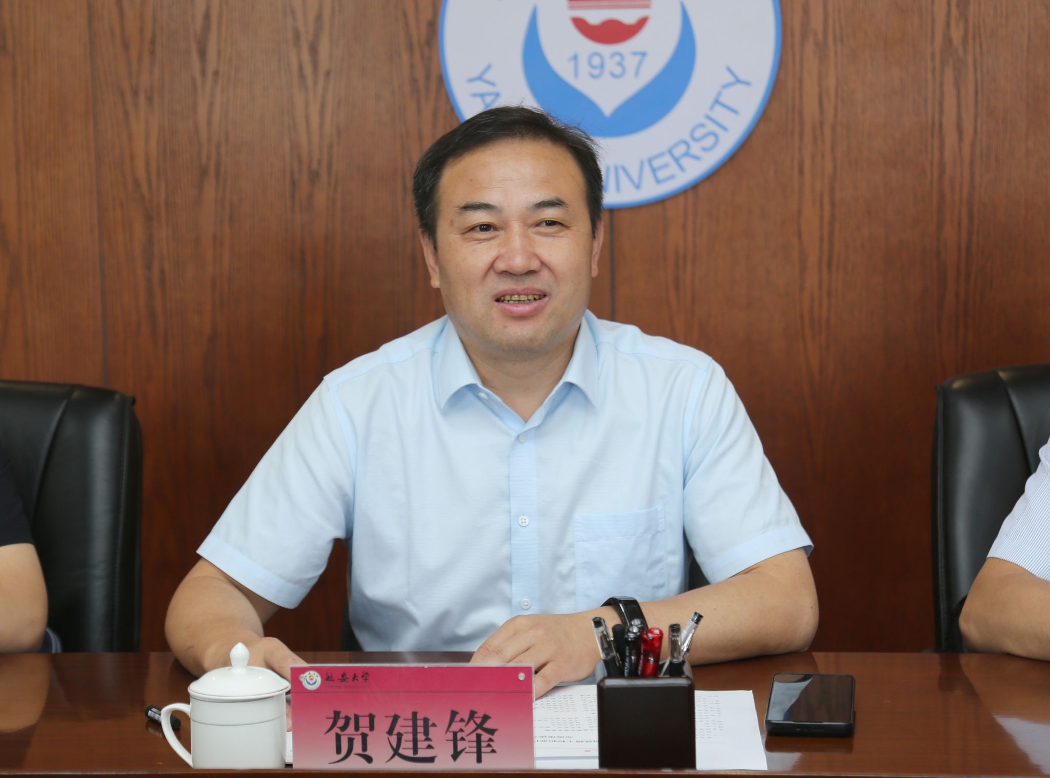 会前,贺建锋一行参观了beat365校史馆。