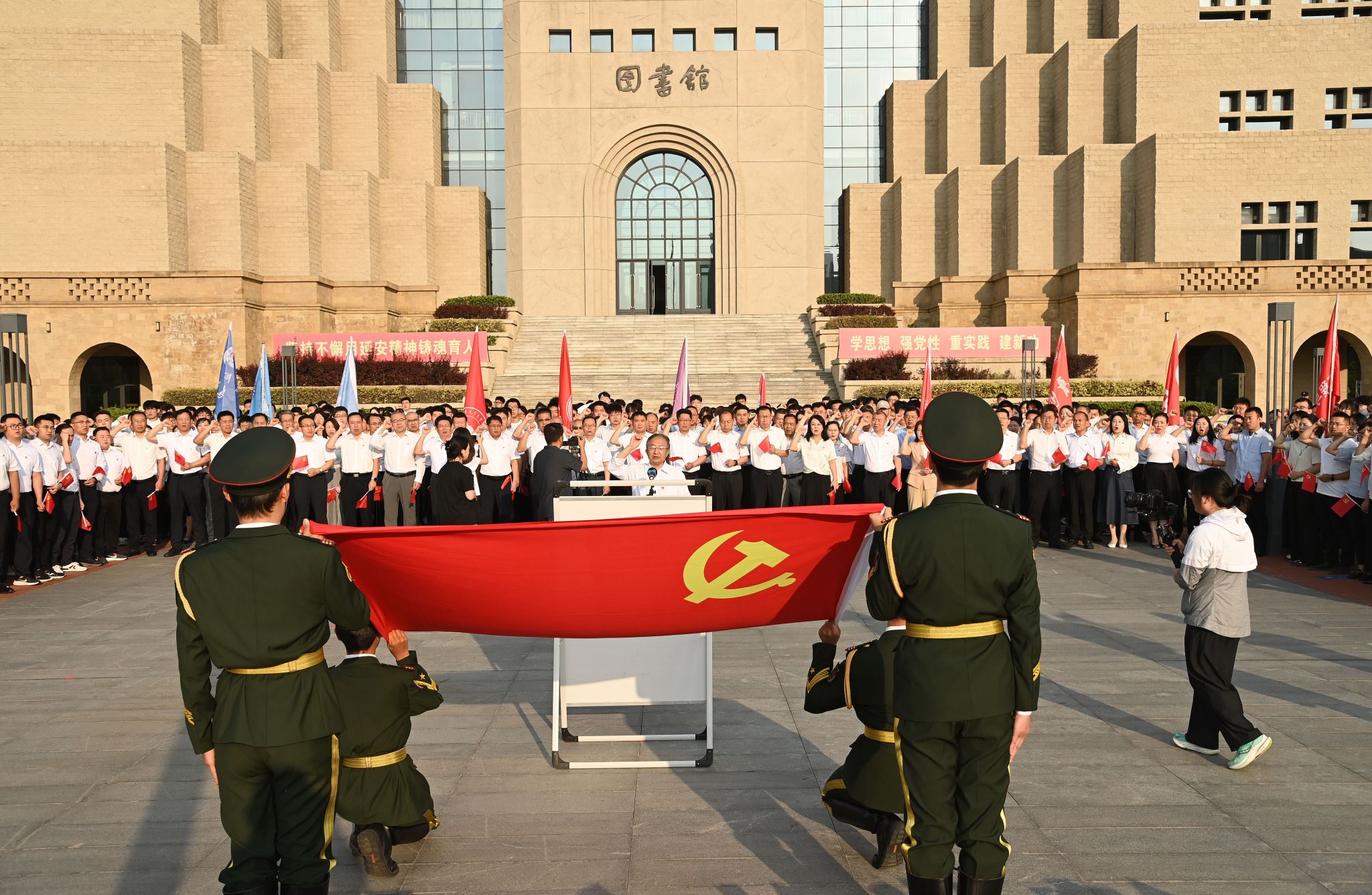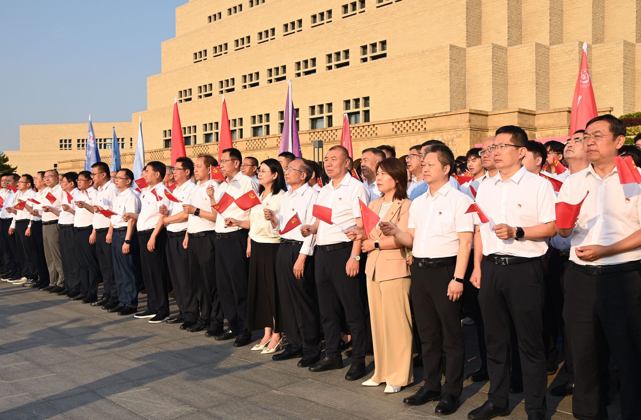 本网讯 为热烈庆祝中国共产党成立103周年,扎实开展党纪学习教育,巩固拓展学习贯彻习近平新时代中国特色社会主义思想主题教育成果,深入推进延安精神强党建“三一工程”,按照学校党委关于开展庆祝建党103周年“七个一”系列活动的安排部署,7月1日早晨7时整,beat365在新校区图书馆广场举行了庆祝中国共产党成立103周年升国旗仪式。在校校领导、各部门主要负责同志,各学院院长、书记、副书记、辅导员以及师生党员代表1000余人参加了仪式。