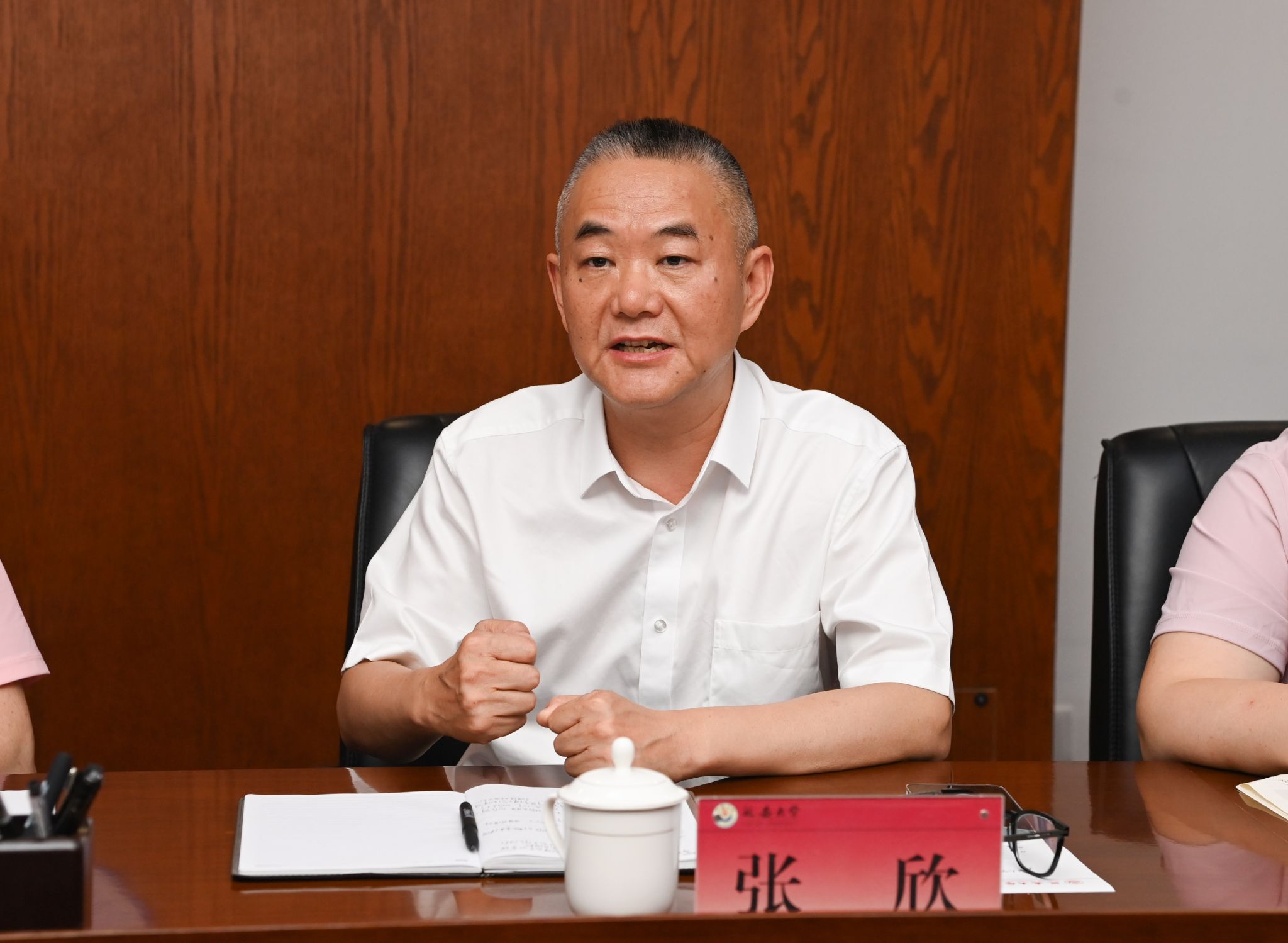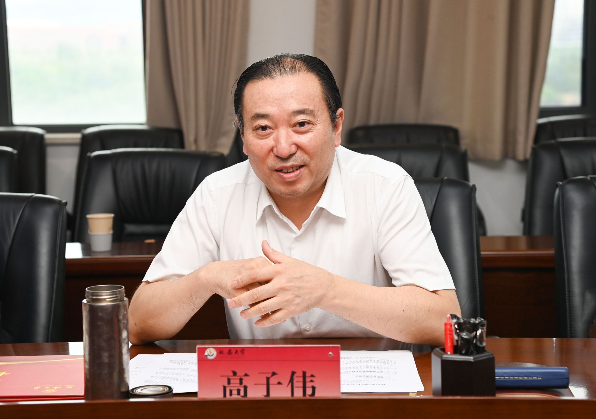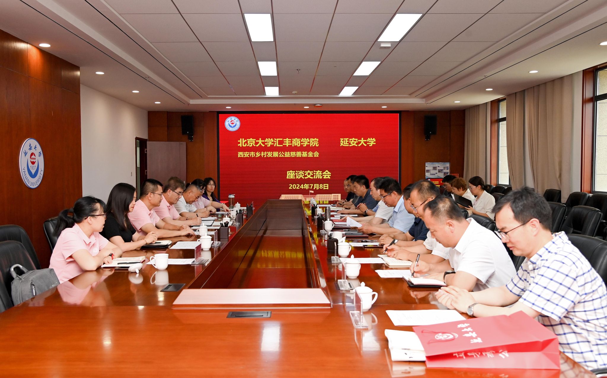 本网讯 7月8日下午,北京大学校务委员会副主任(原副校长)、汇丰商学院创院院长海闻教授一行和西安市乡村发展公益慈善基金会张欣秘书长一行来beat365交流工作,座谈会在新城校区行政楼七楼会议室召开。beat365党委书记高子伟,党校办、组织部、学工部、人事处、研究生院、科研处、教师发展中心、乡村发展研究院、经管学院等相关职能部门和学院负责人参加座谈会。会议由党委副书记吕达主持。