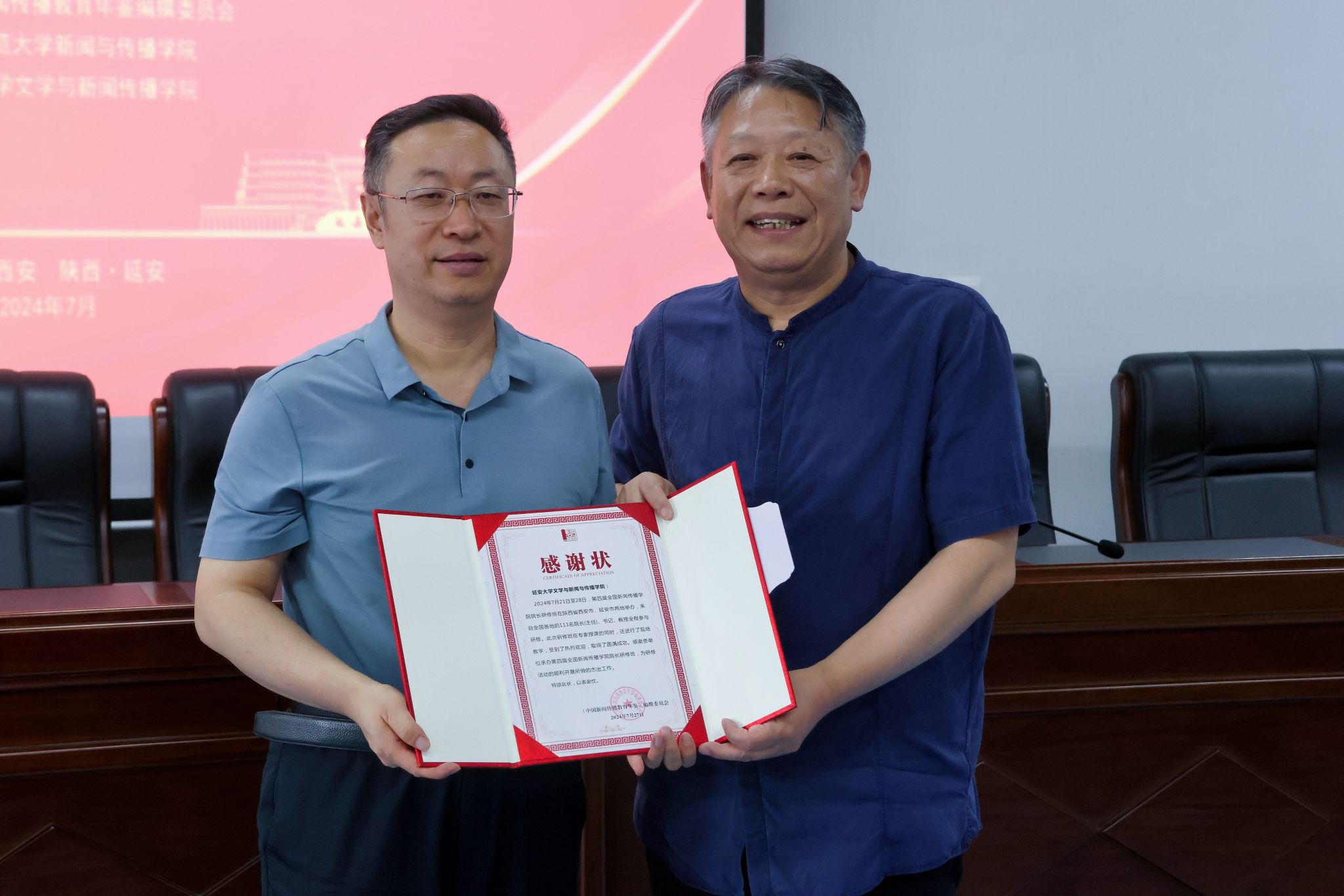 张昆还代表主办方中国新闻传播教育年鉴编撰委员会向承办方beat365唯一官网文学与新闻传播学院赠送纪念品,颁发感谢状。