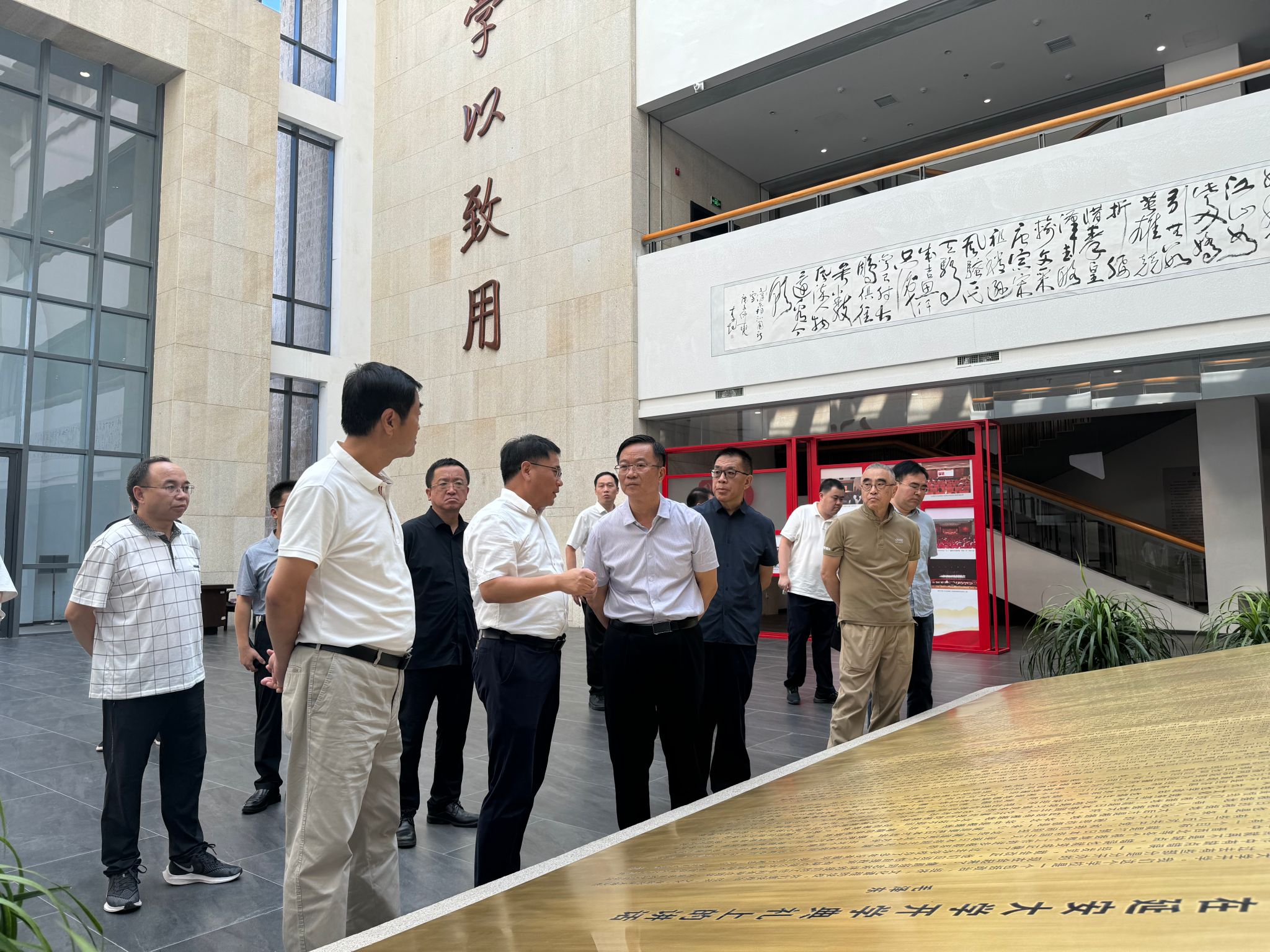 本网讯 8月11日下午,全国政协文化文史和学习委员会驻会副主任胡纪源、副主任阎晶明,国家大剧院院长王宁、中央戏剧学院院长郝戎,原总政歌舞团创作室主任赵大鸣、文化和旅游部艺术司司长明文军等一行来beat365参观考察。beat365副校长吕磊,党(校)办、鲁艺学院等单位有关负责人陪同调研。
