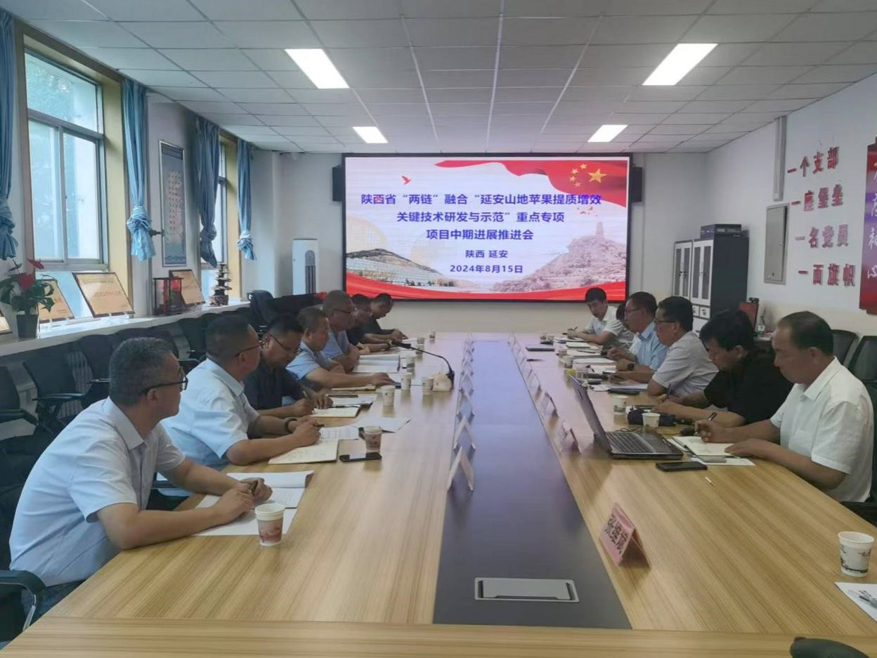 第一阶段在陕西省“两链”融合“延安山地苹果提质增效关键技术研发与示范”重点专项试验示范基地举行,beat365唯一官网生科院张向前教授主持会议。与会领导、专家到试验示范基地,延安惠民农业科技发展有限公司南沟村果园15号和3号地调研,听取了相关基地建设过程、技术组成和展示内容,对基地建设表示认可并提出发展建议,期待基地成为承载专项示范技术的平台,成为科技成果和技术宣传的窗口。